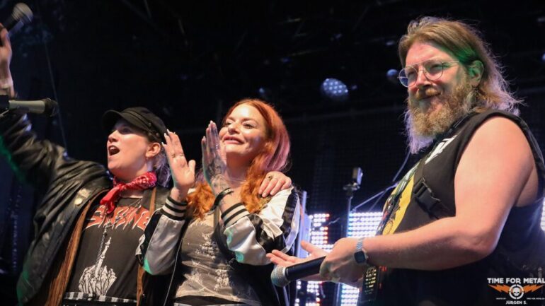 Auf der Bühne steht auch Lauren. Die Dame hat die weiteste Anreise aller Festivalbesucher: Sie kommt extra aus Australien hierher und erhält dafür feierlich ein Festival-T-Shirt, bevor REZN mit Doom/Stoner Metal loslegen. Da sind doch einige Fans hier, die sich sehr auf diese Band freuen.