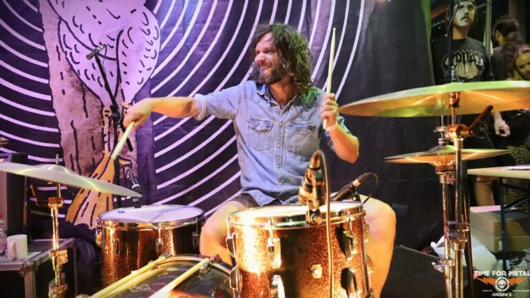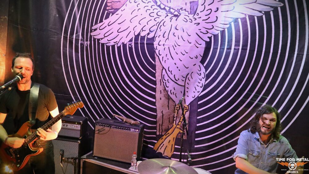 Elephant Tree gehören, genauso wie Steak, zu meinen Lieblingen aus London. Elephant Tree sind heute hier und servieren uns ihren Stoner mit einem extra Schuss Doom. Ich habe die 2014 gegründete Band bereits zweimal in Wiesbaden im Kesselhaus und auch auf dem Desertfest gesehen und war immer begeistert. Bereits kurz nach der Gründung erspielten sich Elephant Tree einen ausgezeichneten Ruf, weil sie tolle Live-Gigs bieten und Festivals wie Freak Valley und Desertfest im Sturm eroberten. Elephant Tree überzeugen heute wieder mit ihrem stampfenden Tempo, das teils an eine Elefantenherde erinnert. Bei einem Song kommt Bill, der Frontmann der Wiesbadener Bushfire, auf die Bühne und begleitet das Quartett am Mikro. Mit Bassist/Sänger Peter Holland spreche ich noch etwas am Merchstand; es gibt offenbar nur ein Shirt hier zu kaufen, Tonträger sind nicht vorhanden. „Scheiß Brexit, den Preis, den wir aufrufen müssten, willst du nicht bezahlen“, bestätigt mir Peter. Ich besitze ja schon einige Vinyls der Band aus der Zeit vor dem Brexit – Glück gehabt.