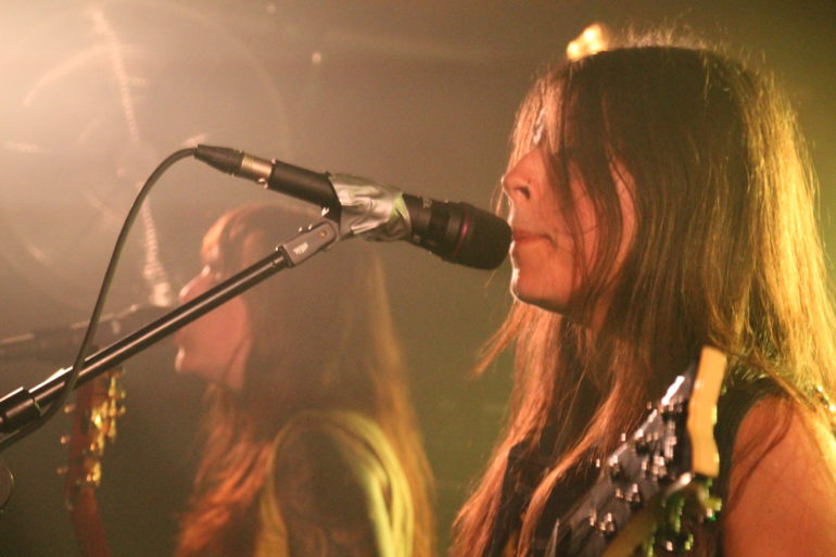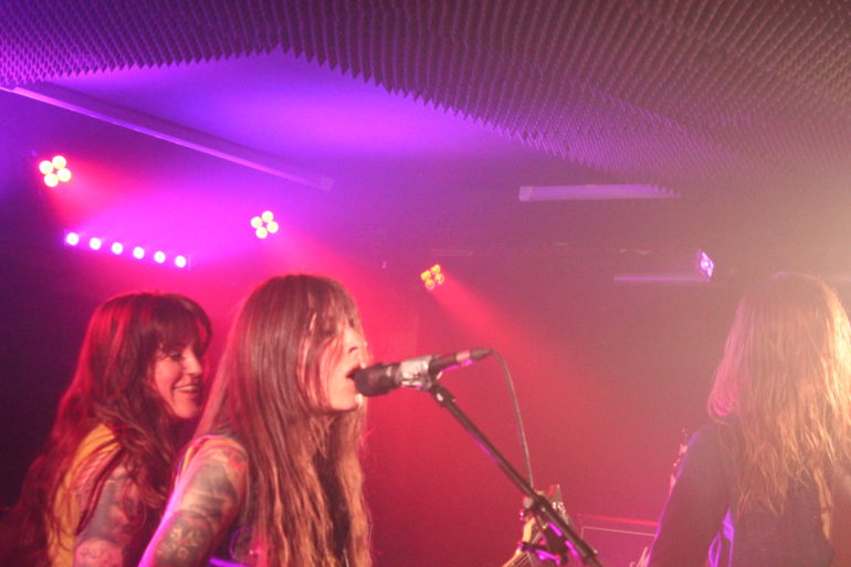 Blickfang sind natürlich die beiden bis zur Halskrause tätowierten Damen Jenna und Acid an den Gitarren und mit ihren Vocals. In den Gesangparts wechseln sie sich ab und liefern sich heiße Gitarrenduelle. Da knistert es regelrecht im Gebälk. Mit Songs wie Bellevue Groove, Doin‘ It Again, 4 Stroke Woman oder Fast Love halten sie das Publikum in Bewegung.