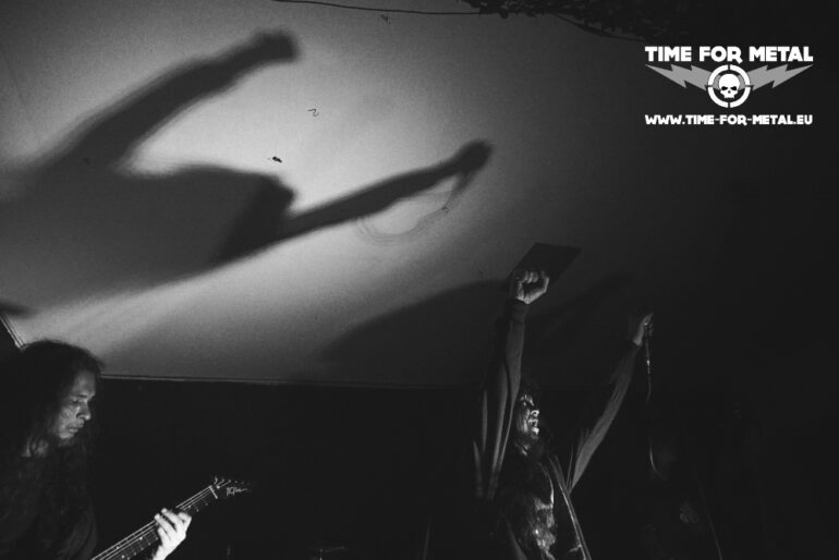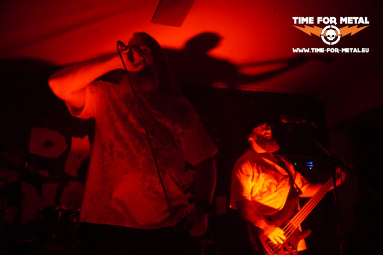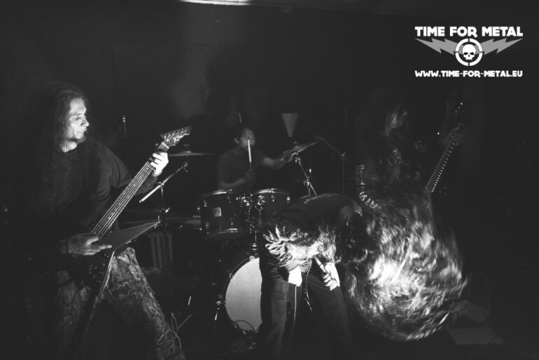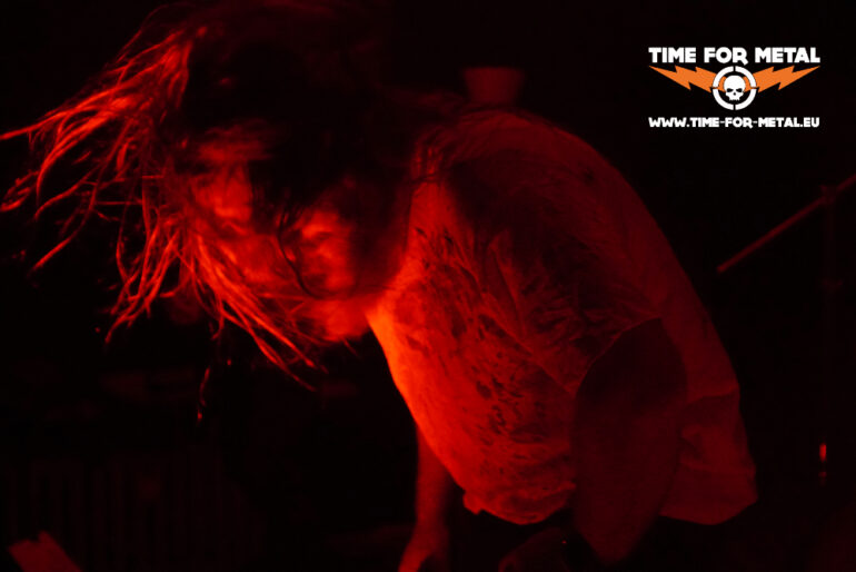 Und dann gibt es auch schon das erste Mal auf die Fresse! Past Insane dürfen das Gemetzel eröffnen! Die Jungs haben ihr erstes Album Dying Paradise und ein paar mehr Songs im Gepäck und metzeln sich straight durch ihr Set, als gäbe es kein Morgen! Die herrlich blutbesudelten Shirts zur optischen Abrundung der musikalischen Gewaltausbrüche gehen dabei leider vollständig im roten Gefunzel der Spots unter. Schade, aber dafür macht der „Deatthrash“-Mix Spaß! Aus der blutigen Finsternis auf der Bühne wird hier dem Tod gehuldigt! Schnell und aggressiv peitscht uns ein Mordanschlag nach dem anderen um die Ohren! Irgendwann geht allerdings das Licht wieder an, dann müssen Ed Gein, der Green River Man und die Leichen aus Bodies In Barrels leider schon Platz machen für den langsamen Tod aus Ecuador!