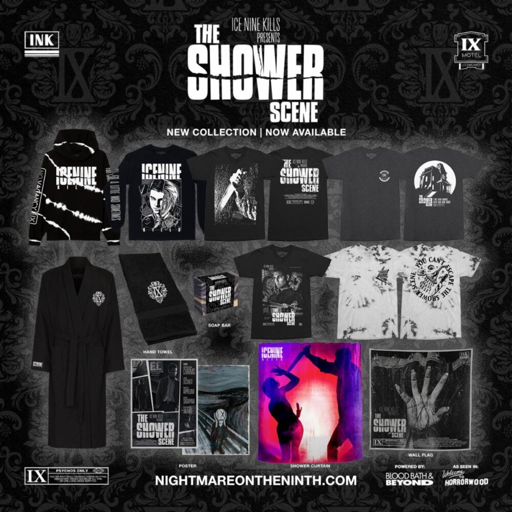 Wie es im Ice Nine Kills-Universum mittlerweile Tradition ist, hat die Band auch eine limitierte Nightmare On The Ninth Merch-Kapsel, die thematisch auf den Thriller Psycho basiert, veröffentlicht. Fans können sie hier kaufen, solange der Vorrat reicht.