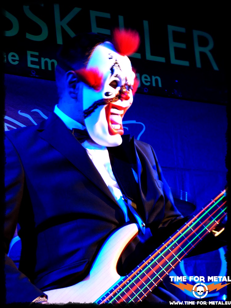 Nachdem der letzte Schlosskeller-Gig im Januar aus gesundheitlichen Gründen abgesagt werden musste, sind sie heute da: In Control aus Radolfzell am Bodensee. Gegründet wurde die Band bereits im Jahr 2011, jedoch erst seit 2015 spielt man in der jetzigen Konstellation Julie (Vocals), Daniel Wikenhauser (Guitar), Emmanuel Ryba (Keyboard), Michael Neik (Drums) und Robin Humljak (Bass) zusammen. Die junge Band betritt nach einen kurzen Intro zu Angel Of Justice die Bühne. Ob es sich um einen neuen Song handelt, kann ich nicht sicher sagen, jedenfalls ist er auf der bisher einzigen EP Modern Fairy Tale aus 2017 nicht vertreten. Wie ich am Rande mitbekommen habe, ist das Debütalbum aber derzeit in Arbeit und man kann sich schon mal auf neues Material freuen. Wie schon zuvor bei Scarcrow, fällt auch hier zunächst das Bühnenoutfit der Band ins Auge, denn die Herren der Schöpfung betreten schick im Anzug, Bassist Robin Humljak sogar mit Zylinder, Frontfrau Julie dagegen etwas schrill mit Hut, kurzem Röckchen und Glitzersteinen im Gesicht, die Bühne. Das Mädel ist immer für eine Überraschung gut, denn bei früheren Auftritten kam sie schon als Nonne oder Braut verkleidet und mit viel Kunstblut verziert. Heute geht es ein bisschen weniger theatralisch vonstatten, schade! Musikalisch geht es aber mit modernem Alternative Rock direkt straight nach vorn und auch das Publikum ist vom ersten Moment dabei. Zu Behind The Mask setzen sich dann alle Bandmitglieder verschiedene Clownsmasken auf, doch von einer Zirkusveranstaltung ist man hier weit entfernt. Dennoch passt die Maskerade gut, denn jeder der Anwesenden hat definitiv Spaß. Auch zeigt sich jetzt, dass Frontfrau Julie keine kleine Piepsstimme hat, sondern dass es am Soundmann gelegen hat, dass man sie vorhin im Duett mit Scarcrow kaum gehört hat. Jetzt stellt sie eindrucksvoll unter Beweis, dass sie facettenreich sowohl die leisen, als auch die lauten Töne drauf hat, wobei sie manches Mal an Shirley Manson von Garbage denken lässt. Die nächsten Songs Two Face, Modern Fairy Tale und Destroy Them machen dann aber klar, so einfach ist die Band gar nicht in eine Schublade zu packen, denn zu viele verschiedene Einflüsse aus Rock und Metal spielen eine Rolle. Mal sind die Songs punkig angehaucht, dann wieder sehr metallastig, dann wieder zart, zerbrechlich und balladesk. Zerbrechlich sieht auch Frontfrau Julie aus, klein und zierlich, aber der erste Eindruck täuscht, denn das Mädel ist ein echter Wirbelwind, eine Rampensau, die nicht eine Sekunde stillstehen kann. Unermüdlich tanzt und bangt sie auf der kleinen Bühne, post mit den verschiedenen Bandmitgliedern und animiert eifrig das Publikum zum mitmachen, welches sich auch nicht lange bitten lässt. Zwischendurch verlässt sie ein paar Mal die Bühne und begibt sich, bewaffnet mit einem Edding, mitten unters Publikum und jeder soll ihr etwas auf ihr Shirt schreiben. Das ist dann der Moment, wo sich auch ihre Mitstreiter auf der Bühne mal ein bisschen bewegen können, wo auch Bassist Robin, oder Gitarrist Daniel mal an den Bühnenrand treten und Kontakt zum Publikum aufnehmen können, was auf der engen Bühne bisher kaum möglich war, da Julie zu sehr der Dreh- und Angelpunkt der ganzen Band ist. Die Songs Free Birds, We`ve Done, Maggot oder Freefall sind mal gefühlvoll, mal emotional, im nächsten Moment aber auch wieder voller Energie und Aggression. Langeweile kommt hier zu keinem Moment auf. Trotzdem ist dann nach Realist plötzlich und viel zu früh Schluss und die Band verabschiedet sich von der Bühne. Funktioniert natürlich nicht, denn das Emmendinger Publikum fordert nach weiteren Zugaben und so gibt man noch eine Nummer zum besten, eine Scarcrow Coverversion von Mortal Remains. Dann ist aber endgültig Schluss und man kann an der Bar noch das eine oder andere Bier zusammen trinken.