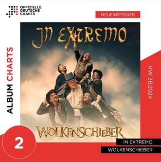 In Extremo über den tollen Chartentry: „Mit Wolkenschieber wieder auf dem Treppchen! Wir freuen uns über den Einstieg auf Platz 2 der Charts. Mit dem 13. Album und nach fast 30 Jahren immer noch ganz oben mitspielen zu können, das ist ein Privileg, dass wir sehr zu schätzen wissen! Wir bedanken uns bei allen Fans, für die jahrelange Treue und bei allen, die auch diesmal wieder unermüdlich mitgeholfen haben, dass wir heute Abend auf einen weiteren Erfolg anstoßen können! Ihr wisst, wer ihr seid; wir sehen uns auf Tour – auf Euch!“