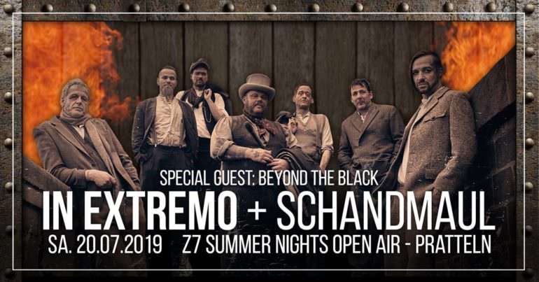 Das Z7 Summer Nights Open Air ist in vollem Gange und nachdem ich gestern Abend schon bei Tarja, Rage & Lingua Mortis Orchestra und Serious Black war, steht der heutige Samstag mit In Extremo, Schandmaul und Beyond The Black etwas im Zeichen des Mittelalters. Nachdem sich gestern der Besucherandrang etwas in Grenzen gehalten hat, scheint es heute, trotz extremer Hitze, eine volle Hütte zu geben. Schon als ich an der Konzertfabrik ankomme, ist der Andrang an der Abendkasse recht groß und das, obwohl ich spät dran bin und der Einlass schon eine Weile läuft.
