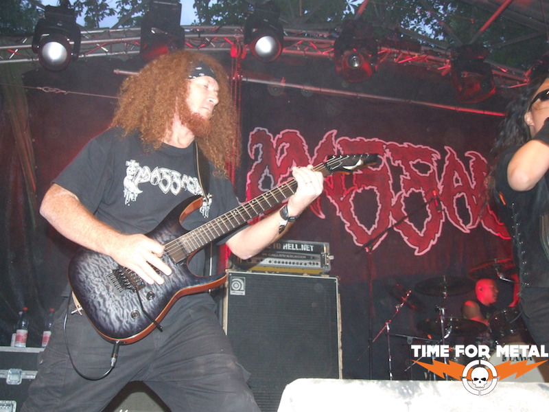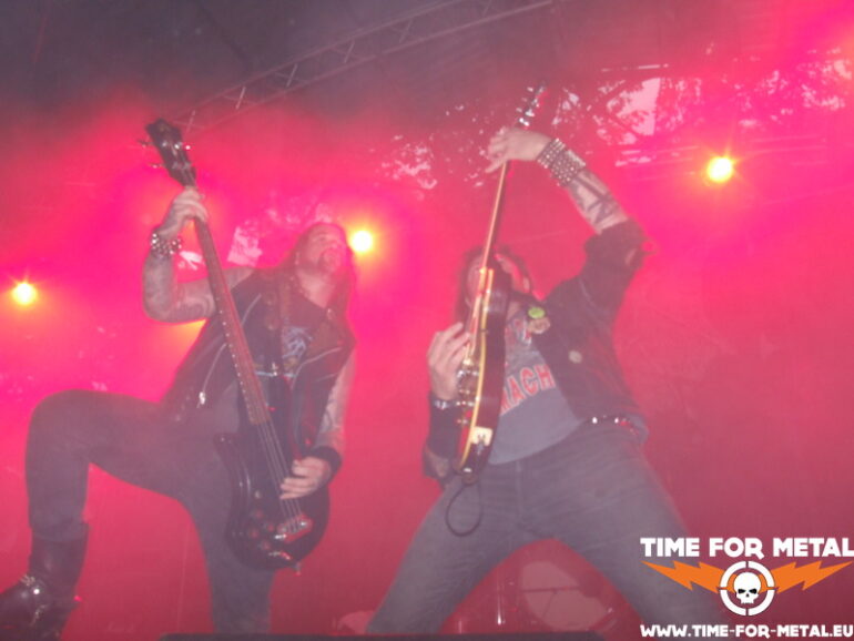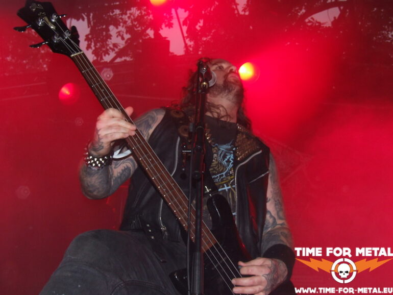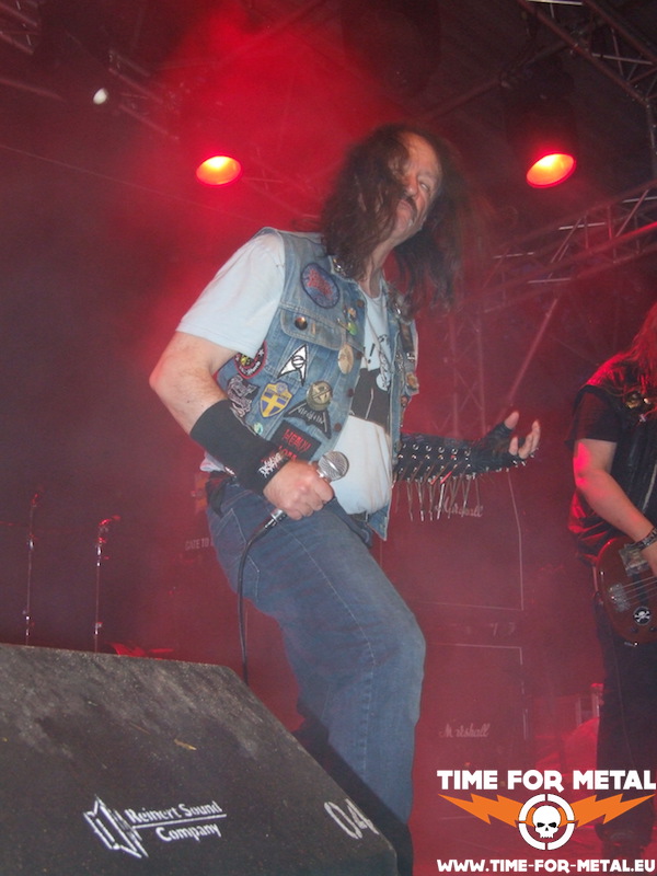 Von Massacre mag ich zwar die frühen Alben sehr, aber die Show heute find ich eher enttäuschend. Zwar versuchen die Jungs, altem wie auch neuem Material das Old-School-Gewand zu verpassen, aber alles in allem wirkt die ganze Performance eher wenig ambitioniert. Klar, das Publikum feiert ab einer gewissen Uhrzeit eigentlich immer alles ab, was von vorn auf sie einbröselt. Aber ich persönlich empfinde das Gebotene bestenfalls als DM-Durchschnitt, dem Kultnamen Massacere eigentlich nicht so richtig gerecht werdend. Ist aber wahrscheinlich alles Geschmackssache, spricht der Affe, bevor er in die Kernseife beißt. Richtig enttäuschend ist dann erst, dass die Band zehn Minuten vor der Zeit die Bühne verlässt, darüber täuscht auch das ShakeHands mit der ersten Reihe im Publikum nicht hinweg. Alles zusammengenommen, ist der Slot auf dieser Position echt unverdient, sorry.