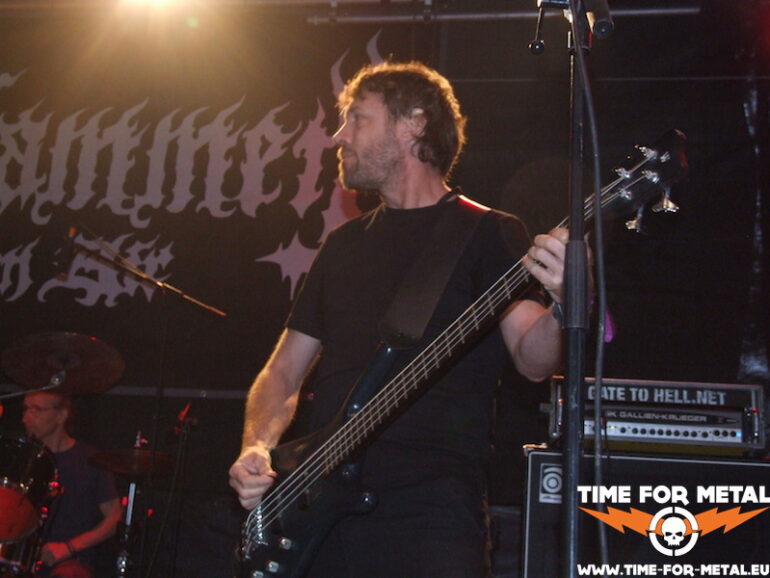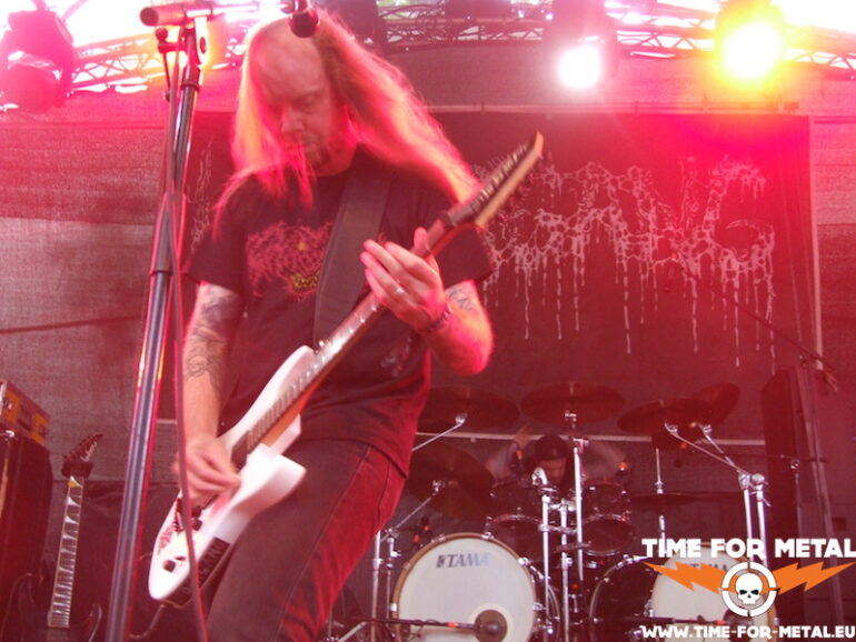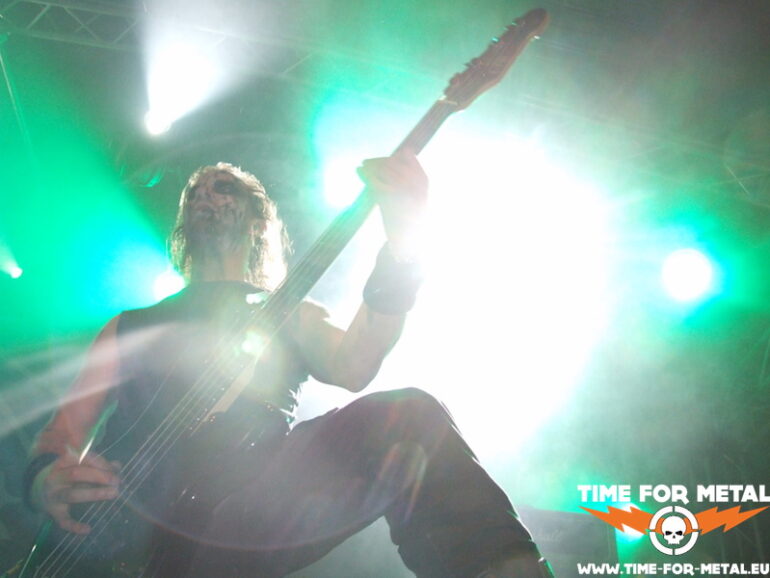 Die Dänen von Undergang kenn ich bis dato überhaupt noch nicht. Die Band präsentiert uns eine wunderbare Old-School-Death Metal-Show, die zumindest für meine Wenigkeit keine Wünsche offenlässt. Teilweise schaffen es die Jungs, an gute alte Bolt-Thrower-Zeiten zu erinnern, was für mich definitiv nicht die schlechteste Hommage ist. Genauso straight forward und stumpf in die Fresse, trotz aller Aggressivität mit einer sehr virtuosen Gitarrenarbeit – echt Wahnsinn. Die Jungs sind ganz allgemein super drauf und das überträgt sich spürbar auch aufs Publikum. Der Solo-Part wird von den Kopenhagenern ausgiebig und mit der gleichen Hingabe zelebriert, wie der ganze Rest der Show. Die Zuschauer fordern schon beizeiten frenetisch eine Zugabe, die dann – man liegt ja gut im Zeitplan – auch gewährt wird. Leider sind die 40 Minuten Stagetime viel zu schnell um. Die Kapelle werde ich mir auf jeden Fall vormerken.
