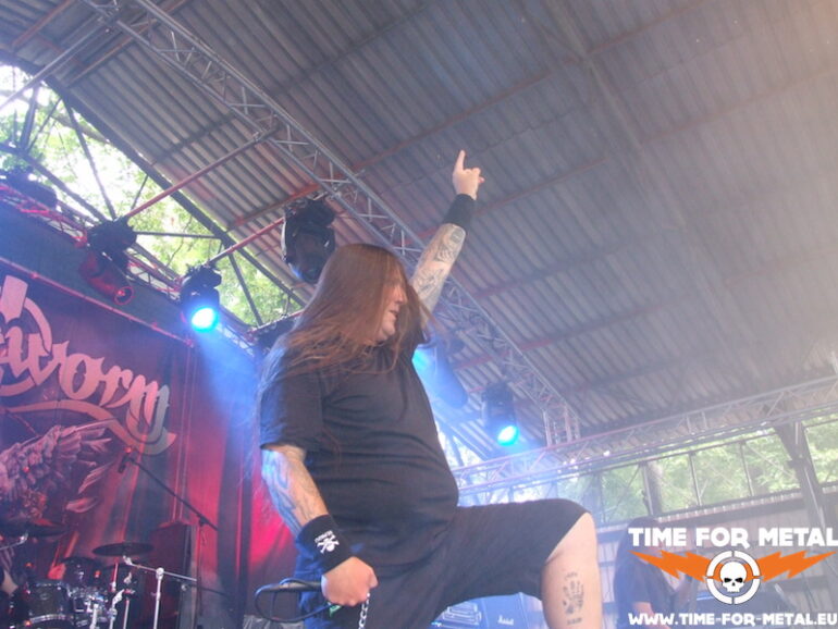 Auf Graveworm habe ich mich schon richtig gefreut, denn es ist mittlerweile fast zwölf Jahre her, seit ich die Tiroler zuletzt gesehen hab, damals gleichsam in einem Festivalumfeld. Seit ich die Band seinerzeit für mich entdecken durfte, sind bereits einige Gigs der Jungs durch die Zeit gegangen, und ich habe ehrlich den sicher subjektiven Eindruck, dass die Band live einfach von Mal zu Mal besser wird. Im Melodic-Death-Sektor, in dem die Band nun mal unbestreitbar verortet ist, müssen sie sich vor der nordeuropäischen Konkurrenz auf gar keinen Fall verstecken. Würde man mich heute aber vor die komplizierte Wahl „Göteborg oder Bozen“ stellen, würde die Wahl knapp ausfallen, denn schon rein emotional hätten die Grabwürmer aktuell die Nase vorn. Muss an den klimatischen Bedingungen der jeweiligen Länder liegen, die deutlich Auswirkungen auf die Art von Komposition, Songwriting und letztendlich die Art der Darbietung haben. Und ich bin nun mal ein Sonnenkind.