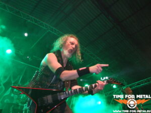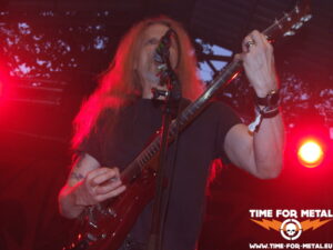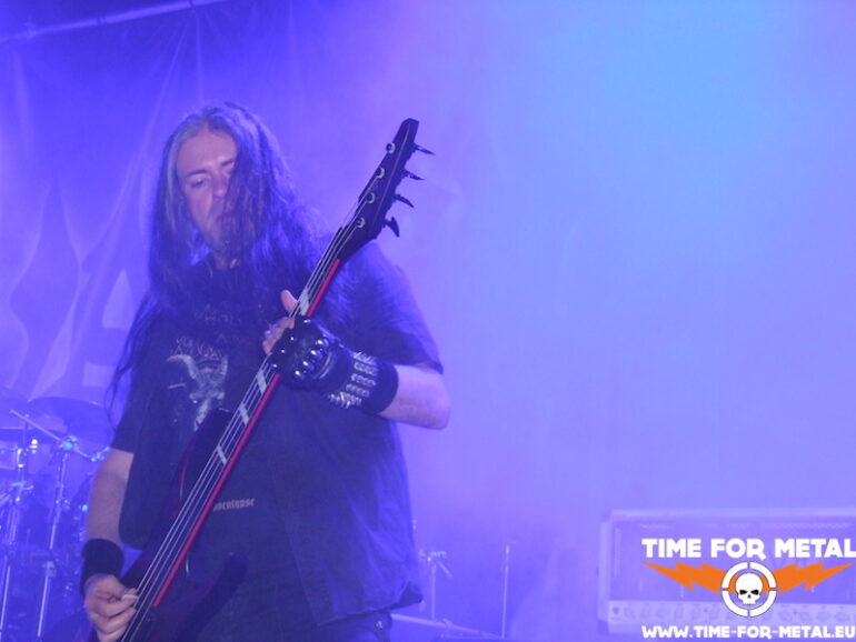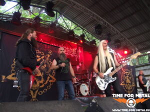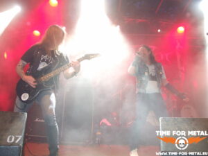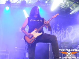 Auf die jetzige Band habe ich mich schon wahnsinnig gefreut, denn es ist schon eine Ewigkeit her, dass ich Ancient Rites in Natura erlebt hab. In meinem Bekanntenkreis war die belgische Combo bösartigerweise Anfang der 2000er manchmal als Dancefloor verschrien. Keine Ahnung, wieso. Ich persönlich finde ja Black Thrash im Allgemeinen echt gut und die Folk-Metal-Variation der Flämischen absolut interessant. Bei dem Auftritt heute feiere ich am meisten die schnelleren Parts heftigst ab. Das intensive, schnelle Drumming lässt die Songs sehr oft zu einem echten Parforceritt geraten. Gelegentlich driften die Stücke in Teilen auch stark ins Maiden’eske ab, was den Old-School-Faktor noch sehr verstärkt. Alle Kuttenträger im Auditorium, mich eingeschlossen, wird das sehr gefreut haben. Jedenfalls steigt die Partystimmung vor die Bühne gerade drastisch an. Allerspätestens jetzt habe ich den Alltag komplett abgeschüttelt und bin wieder in dieser geliebten Parallelwelt angekommen.