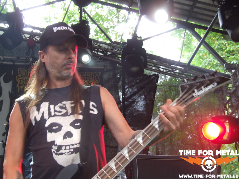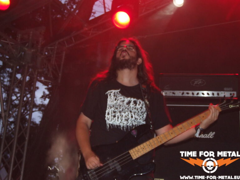 Auch wenn die Deathheads von Disharmonic Orchestra schon über ein Vierteljahrhundert aktiv sind, waren mir die lymphatischen Österreicher bis kurz vor dem Festival bis auf ihren Namen völlig unbekannt. Ich finde die Band – auf jeden Fall das heute Gebotene – extrem abwechslungsreich. Das ist nicht nur schlichter Old School Death Metal, wie ihn hier auf dem Platz wohl jeder liebt. Oft ist der Stoff auch sehr progressiv arrangiert und gerät in kleinen Teilen auch aufs Brutal-Death-Gleis, wenn nicht gleich auf einen grindigen Pfad. Aber alles ist technisch extrem ausgefeilt und das Trio reißt sein Programm mit viel Spaß in den Backen ab. Eigentlich muss man echt dankbar sein, dass die Südösterreicher sich 2002 entschieden haben, ihre seit Mitte der 90er andauernde Ruhepause zu beenden und wieder richtig Gas zu geben, Ich behaupte mal, nachdem ich den Auftritt heute genießen durfte, dass die Jungs absolut nix verlernt haben. Jetzt heißt es für mich, den Backkatalog nachzuarbeiten. Sowas kann ein Festival ja auch mal fürs Plattenregal bedeuten, gelle?
