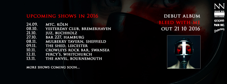 Am 21. Oktober erscheint endlich das lang ersehnte Debütalbum BLEED WITH ME, das mit seiner einmaligen Mischung aus Industrial Rock, Metal und Gothic einen neuen Gold-Standard für die deutsche Szene setzen könnte. Der vorab veröffentlichte Club-Hit „Kill The Lights“ und das harte „Black Clouds, Dark Hearts“ zeigen dabei, welche stilistische Spannbreite die Hamburger mit ihrem innovativen, facettenreichen Sound abdecken können.