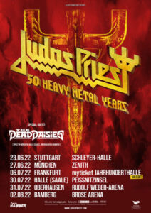 Die Nachfrage nach Karten für die britische Heavy Metal-Legende um „Metal God“ Rob Halford ist ungebrochen, so ist das Konzert in Frankfurt am 6. Juli 2022 mittlerweile restlos ausverkauft und für den Termin in München am 27. Juni 2022 sind nur noch wenige Restkarten verfügbar. Die gute Nachricht für alle deutschen Fans: Judas Priest kündigen auf Grund der großen Nachfrage eine weitere Deutschland-Show am 2. August 2022 in Bamberg in der Brose Arena an.