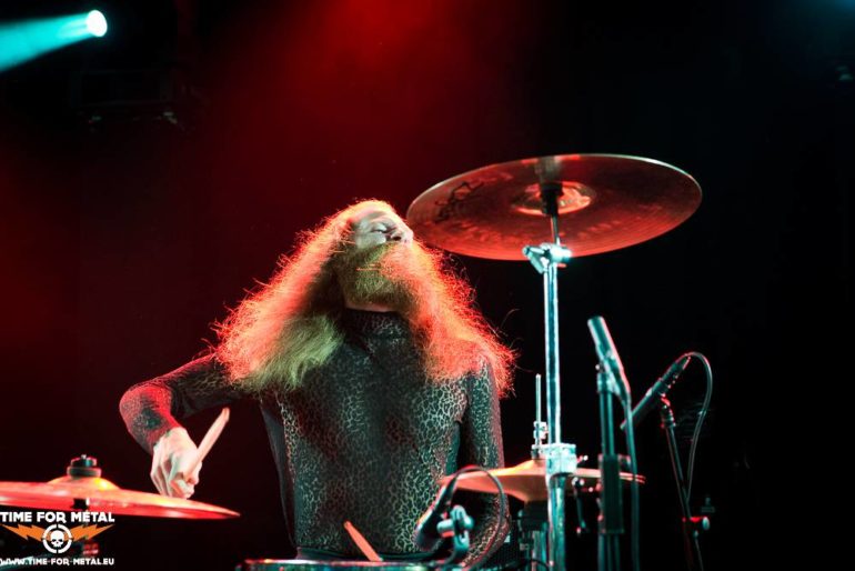 Dass es sich wirklich nicht um Thomas Kuhn handelt, wird bei den ersten Takten und Schlägen von “Tiger” Bartelt auch dem Letzten klar. Wer noch „Tier“ aus der Muppets-Show kennt, weiß, wie der Typ spielt. Nein prügelt, nein seinen ganzen Körper in jeden der Schläge legt. Vielleicht müsste man ihn auch, wie sein Ebenbild aus Stoff, am Schlagzeug anketten. Es geht genauso weiter. Stück für Stück schlägt in die gleiche Bresche, die Musik geht runter wie das berühmte Öl, da kommen Titel wie Pale Blue Eyes, Broken Wings oder Black Sun gerade recht.