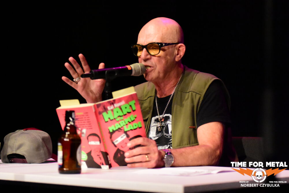 Mit voller Aufmerksamkeit geht es weiter: Hart Wie Marmelade, einer der größten Hits der Band, erklingt in einer auf das Wesentliche reduzierten Version. Im Grundton erinnert das Stück beinahe an das Schlumpflied von Vader Abraham – was Stefan mit einem kurzen Gesangsauszug humorvoll belegt. Schnell wird klar: Heute Abend nehmen sich die beiden selbst nicht allzu ernst. Der erste musikalische Teil endet mit Songs wie Jeden Tag, Jede Nacht, Kleptomanie, Polizisten, Besatzungskind, Gib Mir Mehr Davon und 1-1-0 – ein echtes Extrabreit-Feuerwerk. Dann übernimmt Kai Havaii das Mikrofon für eine Lesung aus seinem ersten Buch Hart Wie Marmelade. Auf dem Programm stehen die Kapitel Extrabreit In Die Achtziger und Der Kaufhaussturm Von Hagen – zwei besonders unterhaltsame Abschnitte, die Kai mit sichtbarem Vergnügen vorträgt. Mit „fliegendem Zaziki“ und einem geplünderten Quelle-Kaufhaus entstehen lebendige Bilder aus dem Hagen der Jahre 1979/80 vor dem inneren Auge der Zuhörer.