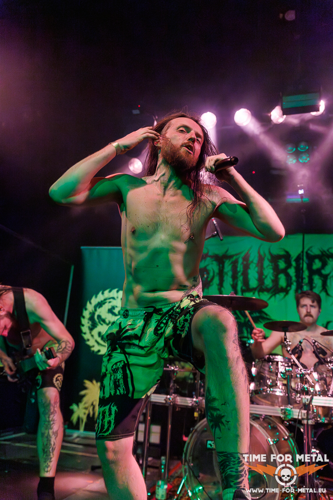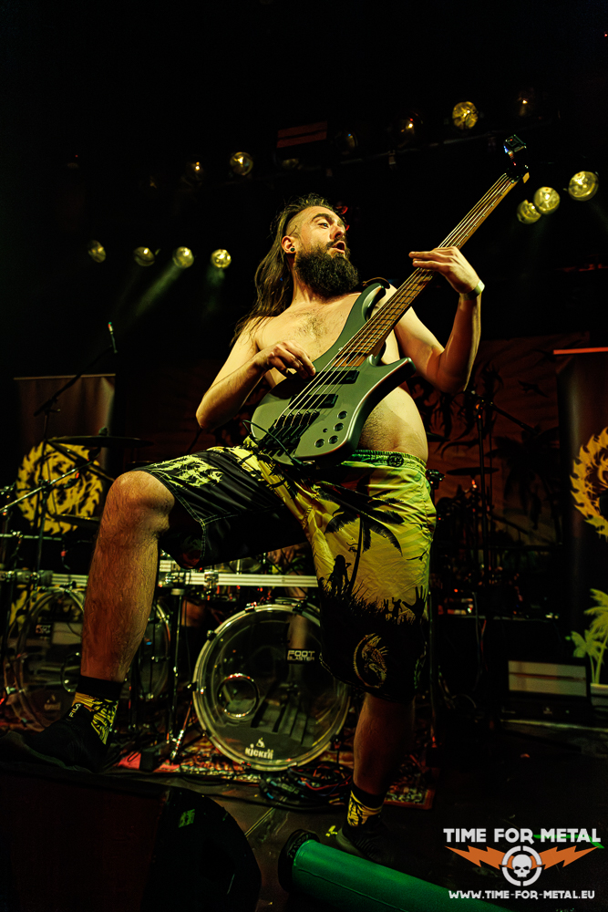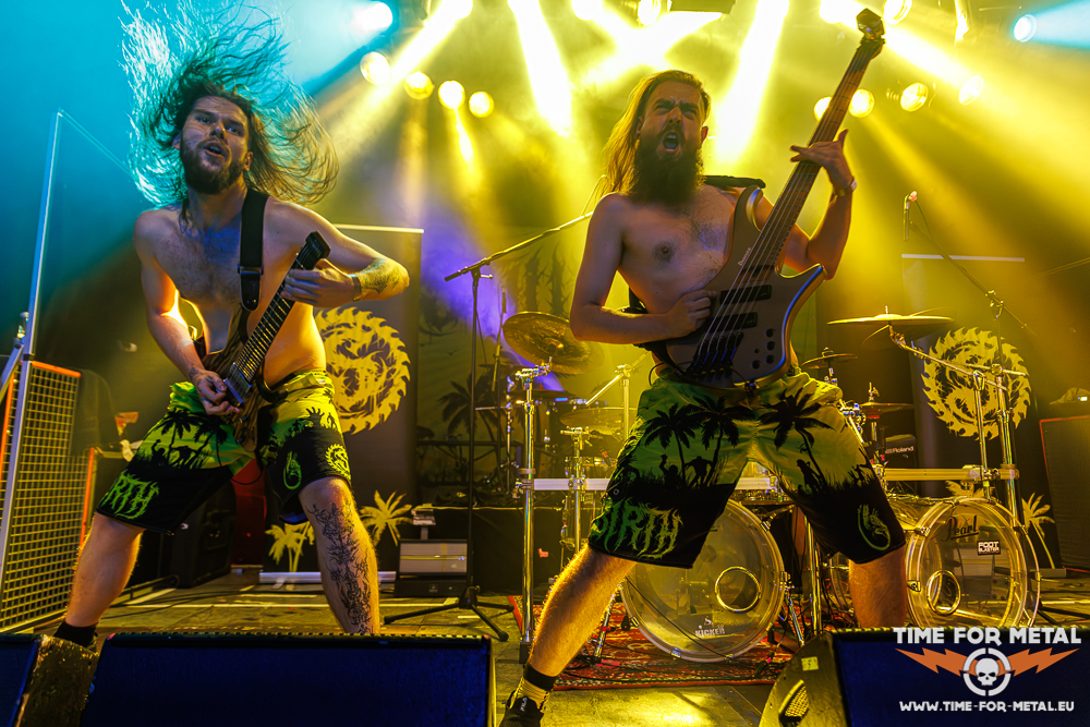 Im Anschluss erobern Stillbirth gute 40 Minuten den Nürnberger Hirsch. Die gut gelaunte Brutal-Surf-Death-Metal-Band überzeugt fast noch mehr als Kataklysm. Liegt’s am Sound, den Badehosen, den Surfbrettern oder den Aufblas-Bongs, die in die Mitte geworfen werden? Oder an der steigenden Fanbase? An den witzigen Texten oder der Stimmung, die von Anfang an einfach passt?