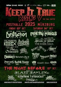 Highlights sind und bleiben die Stücke vom Überalbum The White Godess. Heresiarch macht den Anfang, Sol Invictus folgt und Twelve Stars And An Azure Gown beendet die Trilogie. Das Publikum singt große Teile der bekannten Tracks lauthals mit und der Kodex wird seinem Ruf einmal mehr gerecht. Der Schlusspunkt ist The Course Of Empire, wo der Refrain nahezu perfekt zum aktuellen Zeitgeschehen passt. Live sind Atlantean Kodex eine sichere Bank und unterstreichen das einmal mehr auf dem Keep It True Rising. Wer im Norden wohnt, kann das Quintett unter anderem auf dem Hell Over Hammaburg und dem Headbangers Open Air 2026 bewundern.