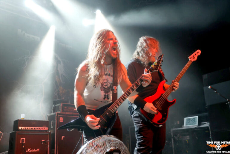 Ein schwerer Stand für den Headliner des Abends. Nach dem starken Gig von Atlantean Kodex und nachdem die Metalheads neben diversen Kaltgetränken bereits neun Bands verköstigt haben, gibt es Old-School-Thrash der Marke Destruction. Einen besonderen Programmpunkt haben die Herren beim heutigen Auftritt im Set, und der nennt sich Infernal Overkill. Schmier und Co. kommen mit einem Old-School-Set nach Würzburg, was zumindest die Thrash-Fraktion nochmals mobilisiert. Wann gibt es schon mal Sachen wie Black Death oder The Ritual live auf der Bühne? Die komplette Infernal Overkill zocken die Herren genau in der Reihenfolge wie auf Platte.