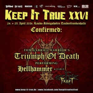 „Seitdem Triumph Of Death im November 2021 auf das Keep It True Rising Festival eingeladen wurden, um dort zu spielen und das fantastisch engagierte Publikum zu erleben, haben wir uns alle gewünscht, eines Tages noch einmal dort auf der Bühne zu stehen. Wir freuen uns daher sehr, dass Oliver Weinsheimer uns eingeladen hat, mit Triumph Of Death beim Keep It True 2026 aufzutreten. Und natürlich erfüllen wir auch gerne Olivers persönlichen Wunsch, dass wir eine kleine Handvoll sehr früher Celtic Frost-Songs in unser Set aufnehmen.“