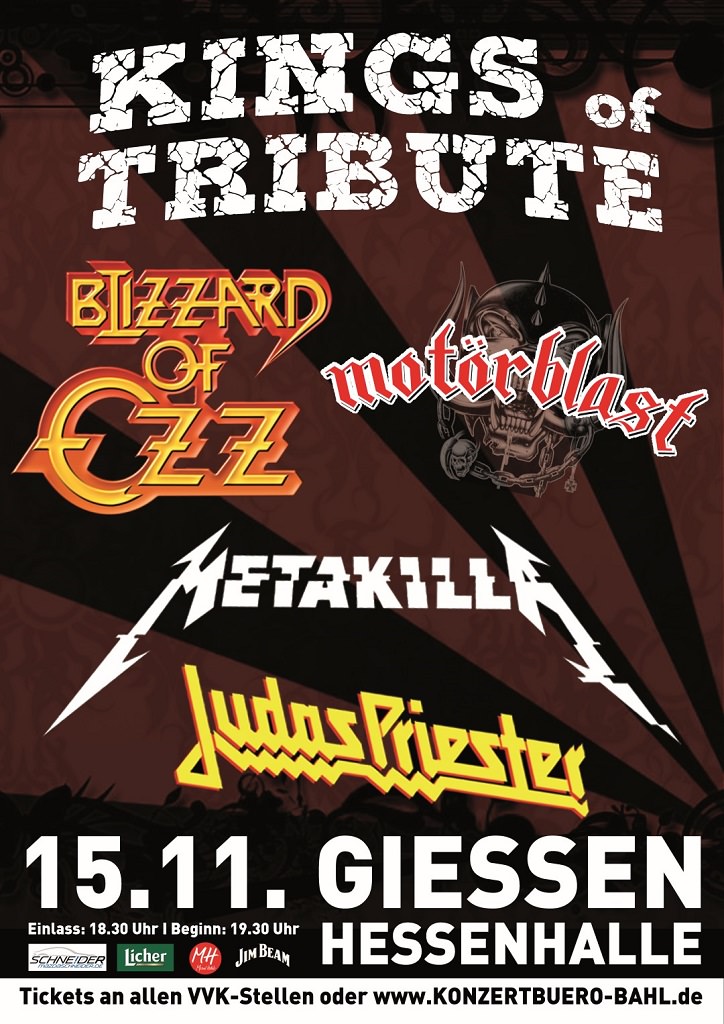 Sie sind die Könige des Hard-Rocks: Black Sabbath mit Ozzy Osbourne, Motörhead, Metallica und Judas Priest. Ihnen zu Ehren laden ihre besten Tribute-Bands am 15. November zu einem extravaganten Konzert in die Gießener Hessenhalle ein. Die Tickets für den spektakulärer Hard-Rock-Abend sind bereits im Vorverkauf erhältlich.