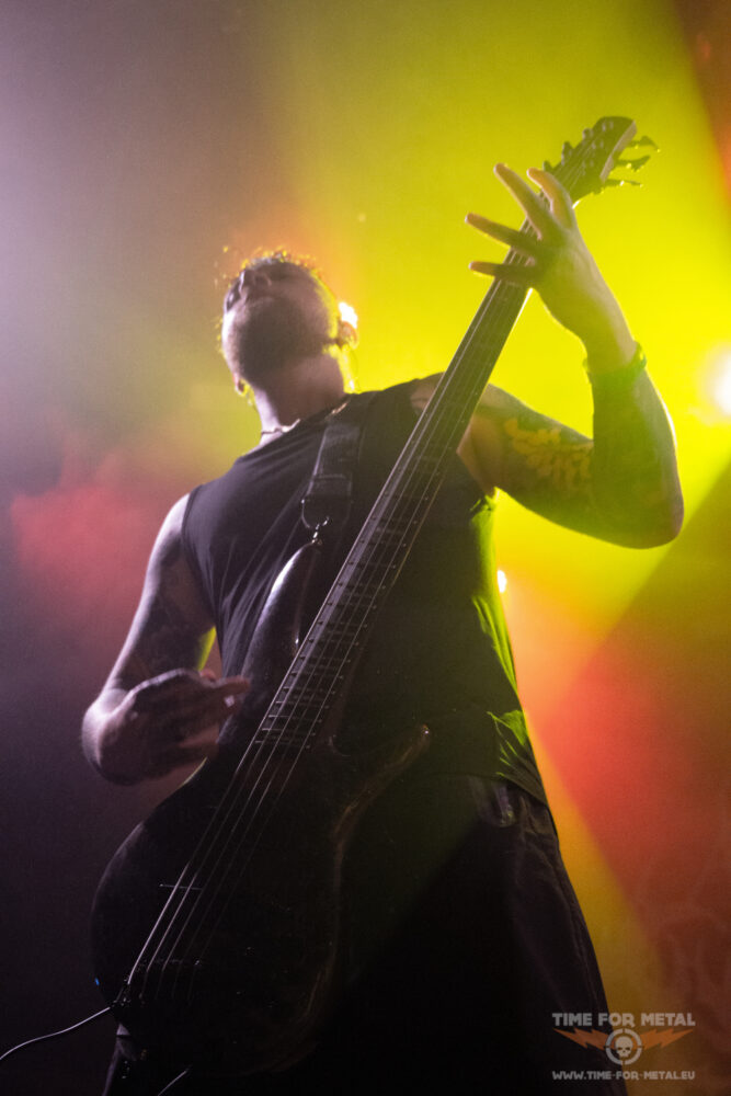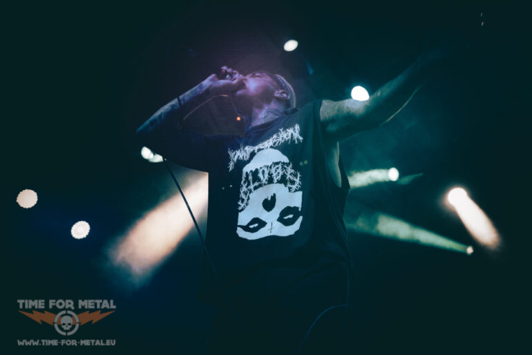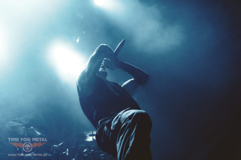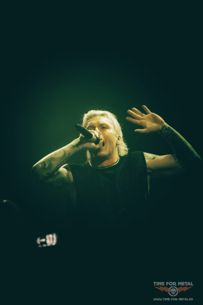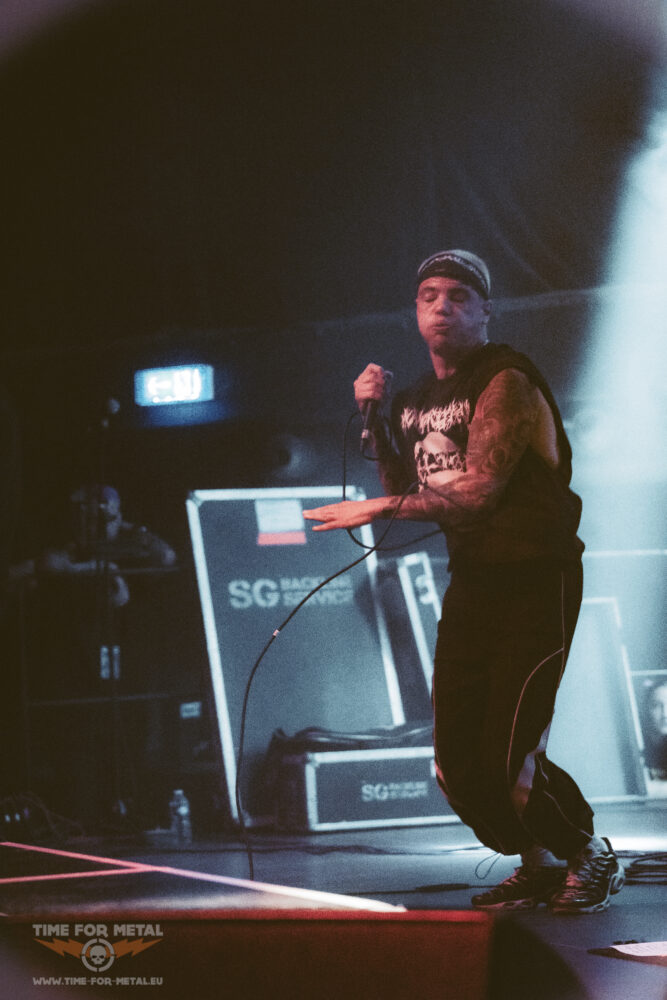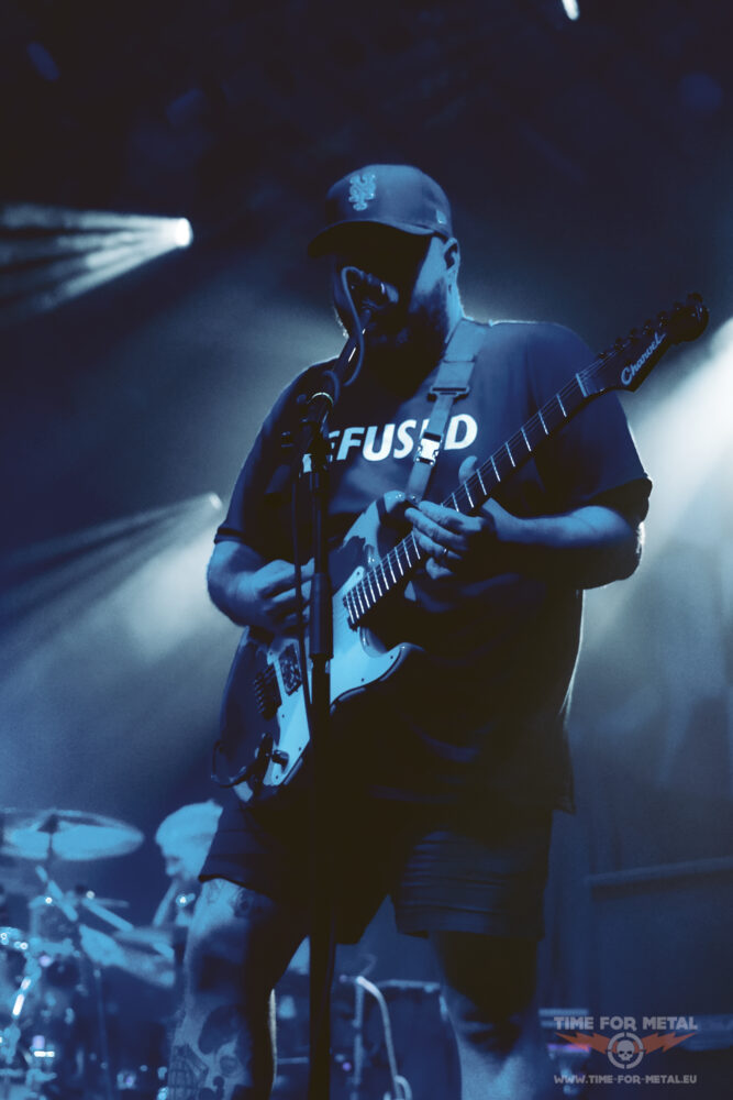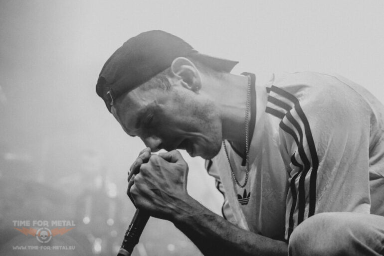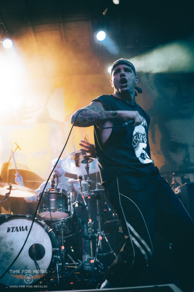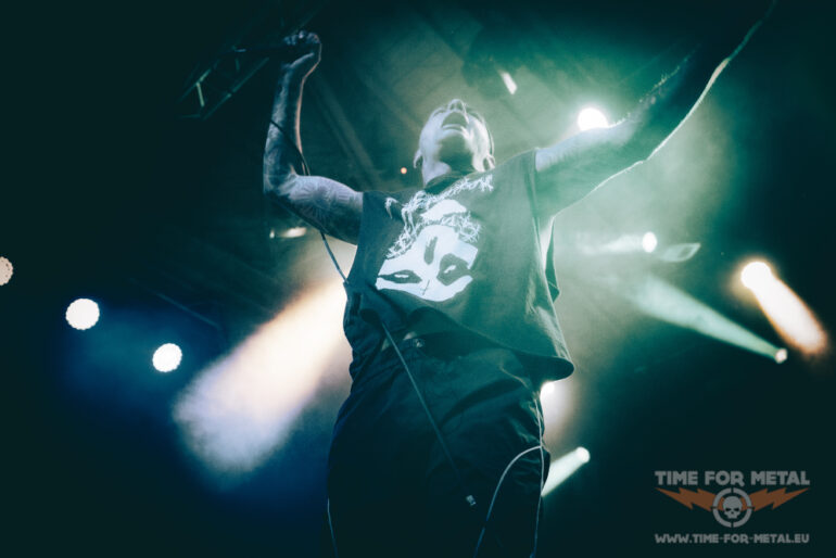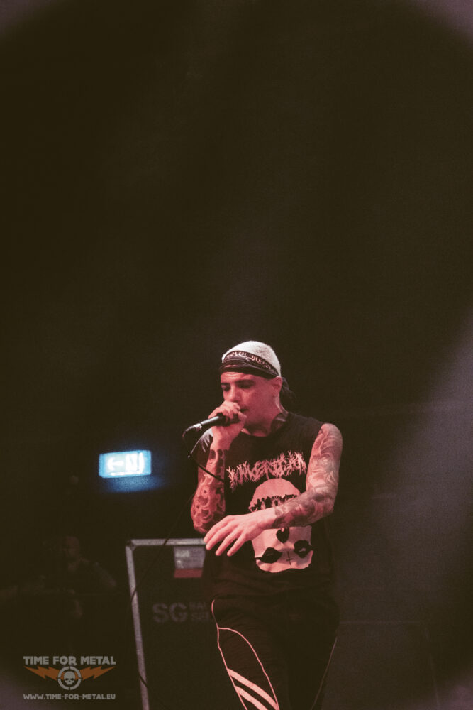 Es ist nun kurz vor 21 Uhr, als Paleface Swiss loslegen – Müdigkeit kommt nicht auf. Im Gegenteil: Die Band aus Zürich rund um Sänger Marc „Zelli“ Zellweger, Gitarrist Yannick Lehmann, Bassist Tommy Lee und Drummer Cassiano Toma walzt mit einer dicken Soundwand durch die Garage. Als ich noch dachte, den Auftritt von Stray From The Path kann man nicht toppen, kommen die Schweizer und legen noch mal eine Schippe drauf. Songs wie Hatred, Best Before: Death oder Please End Me treiben das Publikum an und Fans des Beatdown und Slam Freudentränen ins Gesicht. Ich bin begeistert von der Energie, die Marc Zellweger auf die Bühne bringt. Ich würde sie als standhaft, düster und sehr präsent bezeichnen.