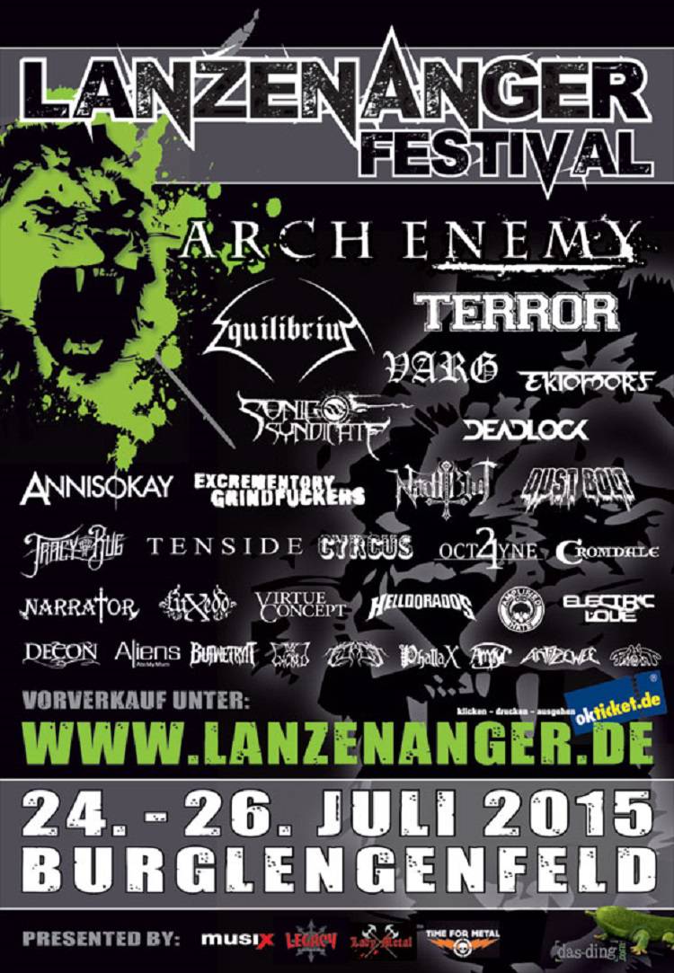 Das von Time For Metal präsentierte Lanzenanger-Festival (24. – 26. Juli 2015) in Burglengenfeld hat mit seinen Ankündigungen nicht untertrieben und für die Premierenveranstaltung eine gewaltige Musikauswahl präsentiert. Mit ARCH ENEMY, der schwedische Melody-Death-Legende, hat sich das Lanzenanger-Festival einen internationalen Top-Headliner geholt, um gewaltig die Sau rauszulassen. Arch Enemy gehen definitiv auf dem Lanzenanger auf Kriegszug.