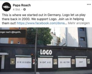 nun ist es leider soweit, das Logo muss offiziell um Hilfe bitten. Nach 46 Jahren Rock’n’Roll ist das Logo seit dem 12.03.2020 Corona-bedingt geschlossen. Rettungsschirm-Programme greifen nicht, unser Erspartes ist fast aufgebraucht. Der Club steht kurz vor der Pleite. Statt still und heimlich die Segel zu streichen, wollen wir kämpfen! Wer uns dabei helfen möchte, könnte dies mit einem Hinweis auf unsere Lage und diesen drei Möglichkeiten tun: