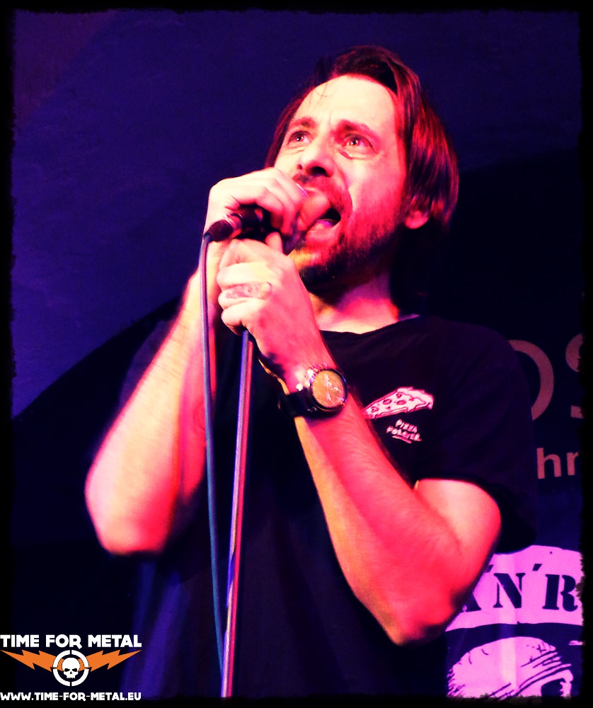 Als die Vorgruppe Ihre Motive gegen 21:00 Uhr die kleine Bühne betritt und mit Reste Von Gestern loslegt, bewahrheitet sich mal wieder, dass kleine, eher unbekannte Bands sich heutzutage für eine Handvoll Leute den Arsch abspielen müssen. Gerade einmal sieben, acht Leute haben den Weg in den Schlosskeller gefunden, traurig! Die Band um Frontschreihals Michael Grötzinger aus Tauberbischofsheim macht das Beste aus der Situation und gibt von Beginn an Vollgas. Der komische Bandname lässt zunächst einmal Fürchterliches erwarten, Deutschpop à la Virginia Jetzt!, Silbermond oder Rosenstolz, doch weit gefehlt – das Quartett bietet ehrlichen, gradlinigen Alternative Punkrock. Reste Von Gestern handelt von kultureller Zukunftslosigkeit der Gesellschaft und geht durchaus als radiotauglicher Punkrock durch und macht klar, dass Punk schon lange nicht mehr die Drei Akkorde – Deutschland Verrecke! – Botschaft sein muss. Der Song Oben Bleiben hat dagegen nicht viel mit Punk gemeinsam, hier wird feinfühliger Betroffenheits Pop geboten, wie er in Deutschland ja gerade in ist. Die Band, die gerade erst ihr Label verloren hat, macht nur noch, worauf sie Bock hat, so Michael Grötzinger. Ihre Motive gibt es erst seit 2015, jedoch waren die Musiker zuvor 15 Jahre als Megakerls mehr oder weniger erfolgreich und wurden von der Industrie verheizt. Mit dem gesellschaftskritischen Erso geht es danach aber glücklicherweise wieder ordentlich zur Sache. Den Fans, sofern man hier, bei einer Hand von Leuten, von Fans reden kann, gefällt es. Besonders zwei Jungs stehen während des gesamten Auftritts vor der Bühne und feiern die Band und tanzen, als gäbe es kein Morgen. Musikalisch spielen Ihre Motive einen Mix aus alten und neuen Songs, darunter auch mit u.a. Schweden und Was Hat Sie neues, unveröffentlichtes Material, welches auf der nächsten Platte zu finden sein wird. Bei 37° wird es zum Schluss noch einmal etwas ruhiger, bevor Meer Sehn das Ende einläutet und noch einmal richtig nach vorne geht. Die Jungs haben alles gegeben und haben sich den Abend, trotz des ausbleibenden Publikums, nicht versauen lassen.