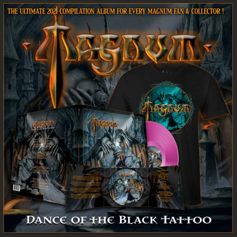 Drei Jahre ist es her, seit Magnum mit The Valley Of Tears – The Ballads eine Compilation veröffentlicht haben, die eher die ruhige und märchenhaft-verträumte Seite der englischen Rockband aufzeigt. Drei Jahre, in denen die Idee gereift ist, dieser erfolgreichen Scheibe ein entsprechendes Pendant folgen zu lassen. Dance Of The Black Tattoo ist genau das geworden: eine Kollektion von Songs, die Magnum ausschließlich als handfest rockende und überaus vitale Formation ausweisen. Das Besondere an diesem Album: Magnum haben ihr großes Archiv nach seltenen Bühnenfassungen und hörenswerten Radioversionen durchforstet und präsentieren nun feurige Liveaufnahmen sowie auf die essentiellen Bestandteile fokussierte Edits von einigen ihrer gelungensten Rocknummern. Natürlich hat Gitarrist und Bandleader Tony Clarkin die Gelegenheit genutzt, sämtliche 14 Stücke neu zu remastern und damit auf den neuesten Stand der (Klang-) Technik zu bringen. Er sagt: „Magnum hatten immer schon zwei Seiten, eine etwas sanftere und lyrischere, aber natürlich vor allem eine überaus kraftvolle und rockige. Und genau diese wird mit Dance Of The Black Tattoo eindrucksvoll dokumentiert.”
