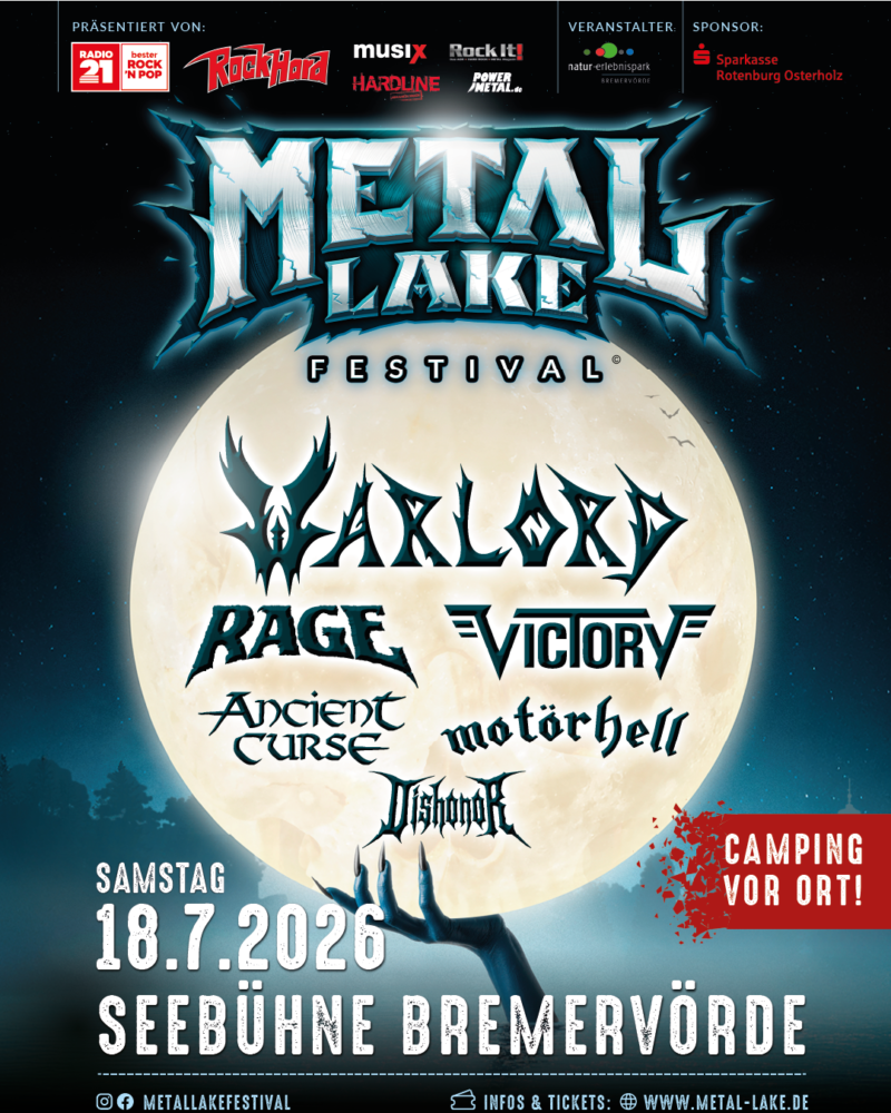 Metalheads aufgepasst – am 18. Juli 2026 feiert das Metal Lake Festival Premiere! Die Seebühne am Vörder See hat gerufen und von lokalen Newcomern bis zu internationalen Szene-Größen sind sechs Bands ihrem Ruf gefolgt und werden gebührend einheizen.
