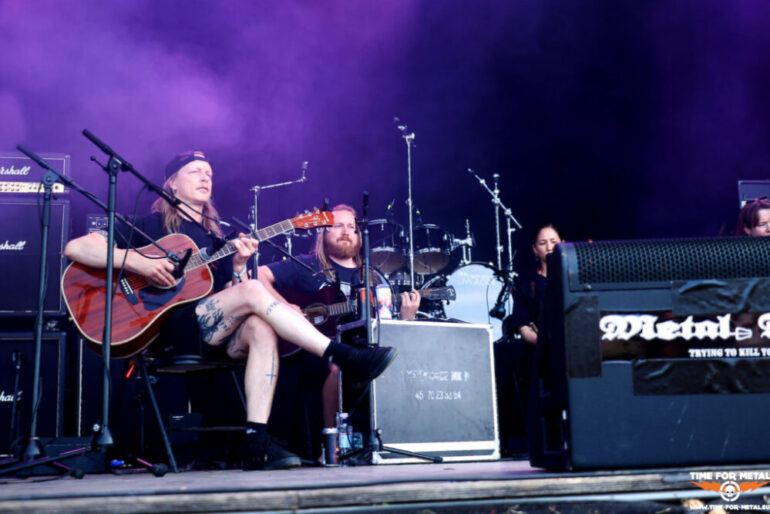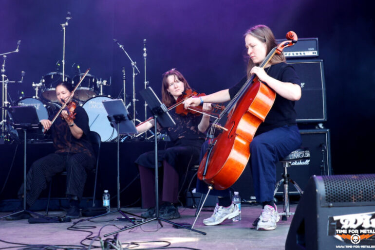 Bei Afsky handelt es sich um ein Projekt von Ole Pedersen Luk, der im Studio alle Instrumente und den Gesang einspielt. Auf der Bühne geht das nicht. Die heutige Unterstützung ist aber speziell. Halvcirkel sind mit Geige und Cello auf den Brettern und ansonsten gibt es akustische Gitarren, statt rasender Saitenarbeit und dazu passenden Gesang, der nicht auf harsche Töne setzt. Die atmosphärischen Tracks, die eine Laufzeit in der Regel um die sieben Minuten haben, bekommen einen völlig anderen Touch. Ein mehr als gelungener Auftakt zum zweiten Festivaltag, der einmal mehr zeigt, welche hervorragenden Musiker:in sich hinter extremen Metalbands verbergen.