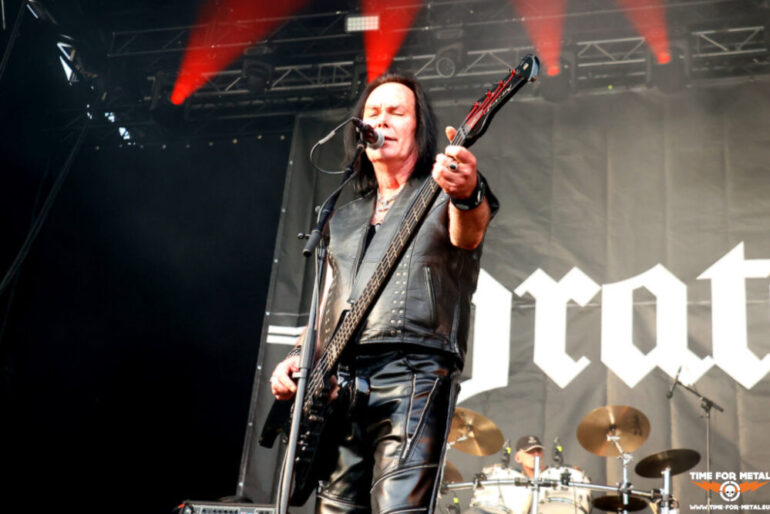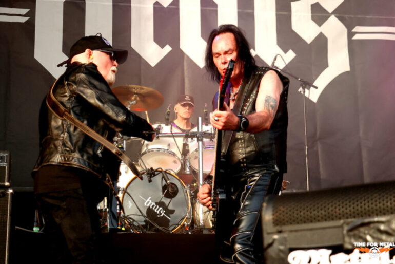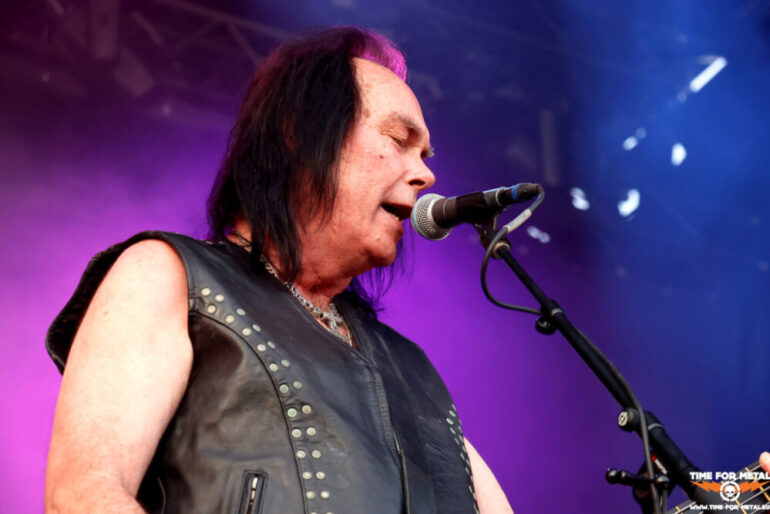 Es wird voll vor der Hauptbühne. Ein Grund, warum viele Menschen zum Metal Magic Festival gekommen sind, nennt sich Brats. Viele Fans hören den Namen der Band vermutlich das erste Mal. Die ursprüngliche Bandbesetzung, die das Album 1980 eingespielt hat, bestand aus Drummer Monroe (Lars Nybo), Gitarrist Hank Shermann (René Krolmark), Bassist und Sänger Yanz Leonhardt sowie Gitarrist und Sänger Michal Denner. Wer sich in der Geschichte von Mercyful Fate auskennt, wird sofort erahnen, wohin die Reise geht. Denner und Shermann spielen später die Demos und das Album Melissa ein. Bei der Demo von Brats 1981 ist bereits Kim Bendix Petersen, alias King Diamond, für den Gesang zuständig. Es geht um den Vorläufer von Mercyful Fate, wovon heute 75 % auf der Bühne zu finden sind. Vor allem Sänger und Bassist Yanz Leonhardt dürfte Metalfans in Deutschland unter anderem von Iron Savior und Stormwarrior bekannt sein.