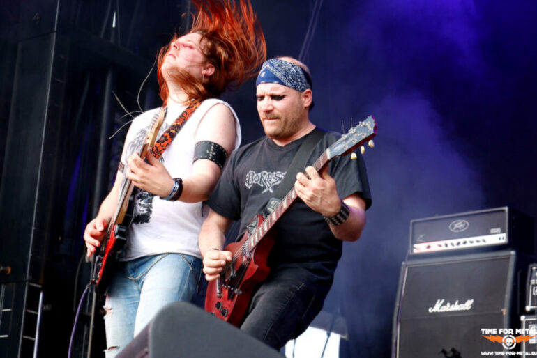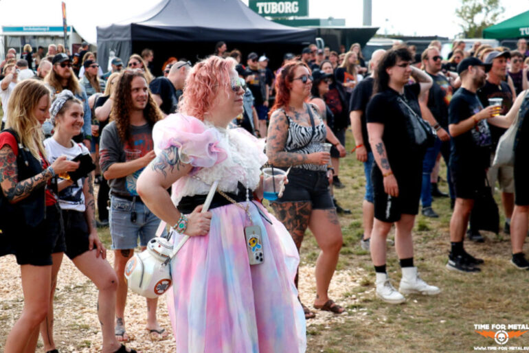 Nightmärr aus Göteborg, Schweden, folgen auf der Hauptbühne und bieten eine Mischung aus Heavy Metal, Hard Rock und Punkeinflüssen. Interessant sind die wechselnden Stimmen der beiden Sängerinnen, aber insgesamt bleiben Nightmärr eine Band, die viele Fans von den Sitzplätzen bei hohen Temperaturen und glühender Sonne zur Mittagszeit mit einem kühlen Getränk verfolgen.