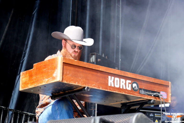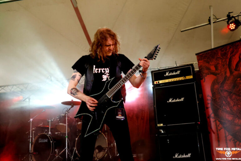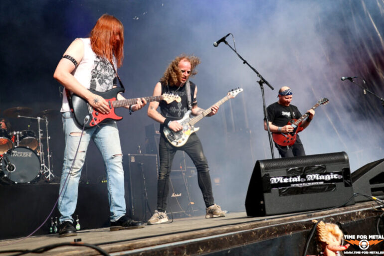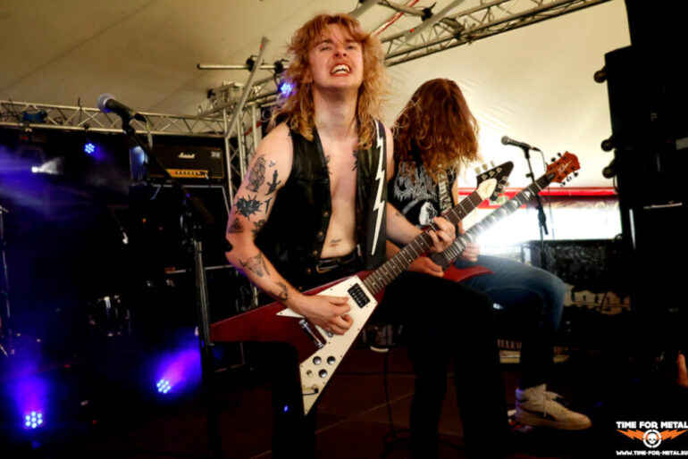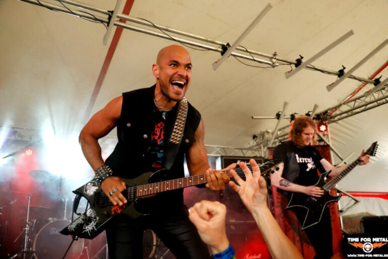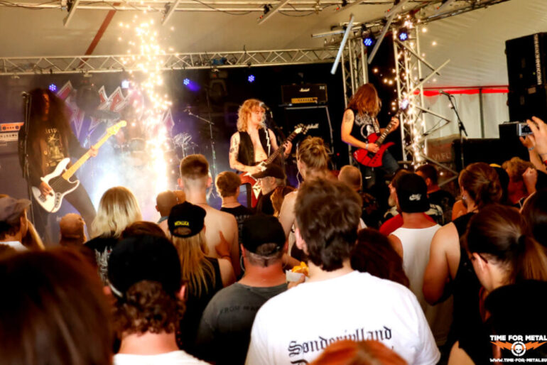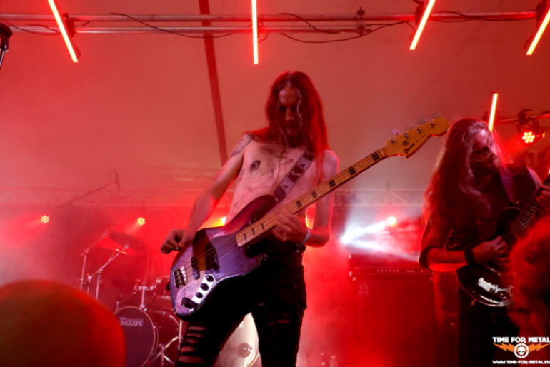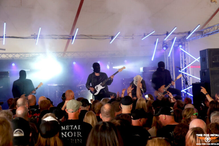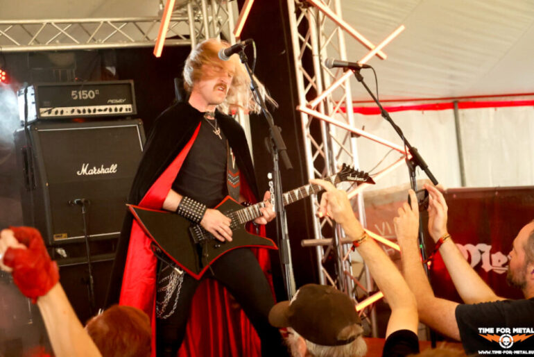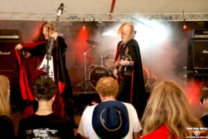 Im Zelt brennt die Sonne nicht so. Folglich finden sich zu Tyrannosatan viele Fans unter dem Sonnenschutz ein. Die Eckpunkte von Tyrannosatan sind schnell erklärt. Das Trio um die beiden Amory-Bandmitglieder Jesper Lundin und Gustav Sundin hat bei Bulldozer aus Italien genauer hingesehen. Nicht nur die Umhänge erinnern an die italienischen Black-Thrasher. Der Sound von Tyrannosatan bewegt sich in der gleichen Nische und die beiden Armory-Bandmitglieder zeigen eine ganz andere Seite als den klassischen Heavy-Metal-Sound bei der Hauptband. Der Publikumszuspruch ist entsprechend und das Trio hätte auch gut auf der Hauptbühne spielen können. Starker Gig.