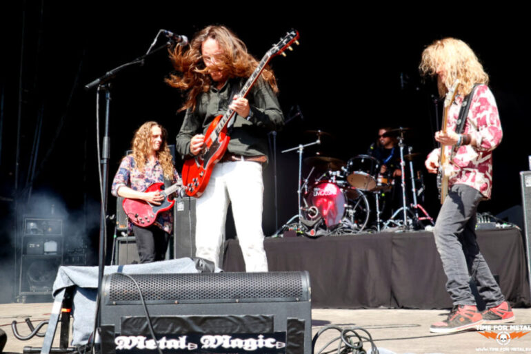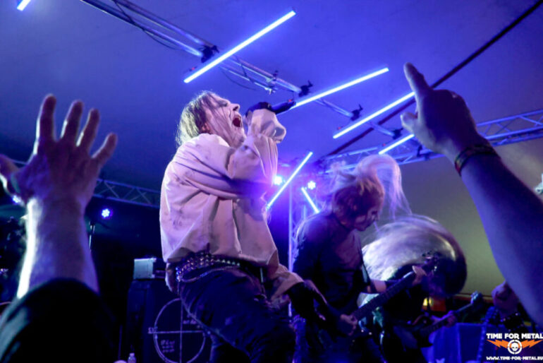 Zurück zur großen Bühne, auf der sich gegen 16 Uhr eine Band warmmacht, die so neu ist, dass eigentlich bis zum Warmspielen unklar ist, was es auf die Ohren gibt. Spade ist der Name. Dahinter verbirgt sich unter anderem Adrian Utzon Dietz, der ehemals bei Solbrud das schwarze Metall beackerte. Mit Spade geht es in eine völlig andere Richtung. Hippieklamotten und 70er-Jahre-Rock ist der Ansatz. Das präsentiert die Truppe aber exzellent auf der Bühne, sodass hier einiges an Potenzial ersichtlich wird. Ob und wie es mit Spade weitergeht, ist wohl noch nicht ganz sicher. Der heutige Auftritt sollte die Protagonisten in ihren Aktivitäten bestätigen. Die Musik passt nicht unbedingt zum vorherrschenden Sound auf dem Metal Magic Festival, aber ein musikalischer Farbtupfer schadet nicht.