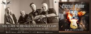 Bereits mit ihrem 2018er Comeback-Album Smoke On The Mountain legten Eternal Flame die Messlatte hoch. Doch ihr neues Werk Gravitation übertrifft seinen Vorgänger in Sachen Songwriting, Performance und Virtuosität. Klassischer Heavy Metal trifft auf eingängige Rocksongs und neoklassische Melodien – alles getragen von Michael Schinkels brillanter Gitarre und unvergleichlicher Stimme. Außerdem an Bord sind Helmut Kohlpaintner (Keyboards), Thomas Keller (Bass) und der neue Drummer Tommy Wagner. Gemeinsam liefert man mit den Gastsängern Mark Boals und Göran Edman herausragende Leistungen ab. Lyriker Timothy Touchton (Go For Gold – Olympic Games Seoul 1988, Sail Away – Joe Cocker, zahlreiche Top-40-Hits) ist für den Großteil der Texte verantwortlich.
