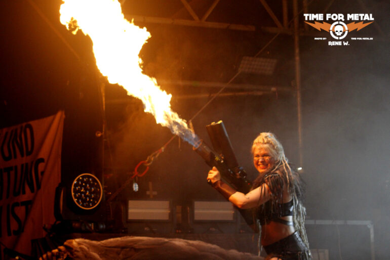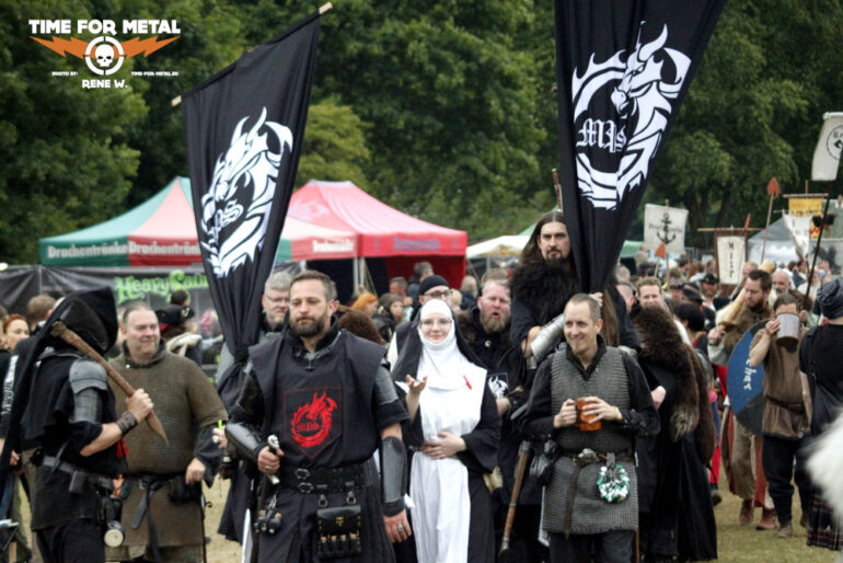 Die aufgeheizte Meute übernehmen Feuerschwanz. Die Band hat in den letzten Monaten durch den ESC-Vorentscheid noch einmal kräftig die Werbetrommel für ihren humorvollen Mittelalterrock und Folk Metal gerührt. Dafür brauchten sie diesen gar nicht zu gewinnen, um in aller Munde zu sein. Der volle Terminkalender spricht Bände. Ebenso wie Subway To Sally zieht es auch Feuerschwanz am Samstag in den Süden. Für die Met-vernichtenden Ritter geht es über Nacht bis nach Kufstein nach Österreich. Der Vorhang fällt mit SGFRD Dragonslayer, Vorhang frei für den Hauptmann und Hodi. Memento Mori und Untot Im Drachenboot lassen den Feuersturm entfachen. Im Volldampf-Modus schmieden sie moderne Klänge, die durch den altertümlichen Fleischwolf gedreht werden. Dieser Cocktail beinhaltet einen unglaublichen Partyfaktor. Das Duo Metfest und Ultima Nocte lässt die Hörner kreisen, bis der neue Hit Knightclub Rastede in Ekstase versetzt. Das Duo am Mikrofon harmoniert brillant, zieht das Publikum mit und hat einfach voll Bock auf die eigenen Werke. Der Sound ist gelungen und das Bühnenbild ein Spektakel. Kampfzwerg und Highlander lassen die Funken fliegen, aber auch Coversongs können punkten. Dragostea Din Tei und Warriors Of The World United kann man schon mal im Feuerschwanz-Design genießen. Das Das Elfte Gebot setzt den fulminanten Schlusspunkt.