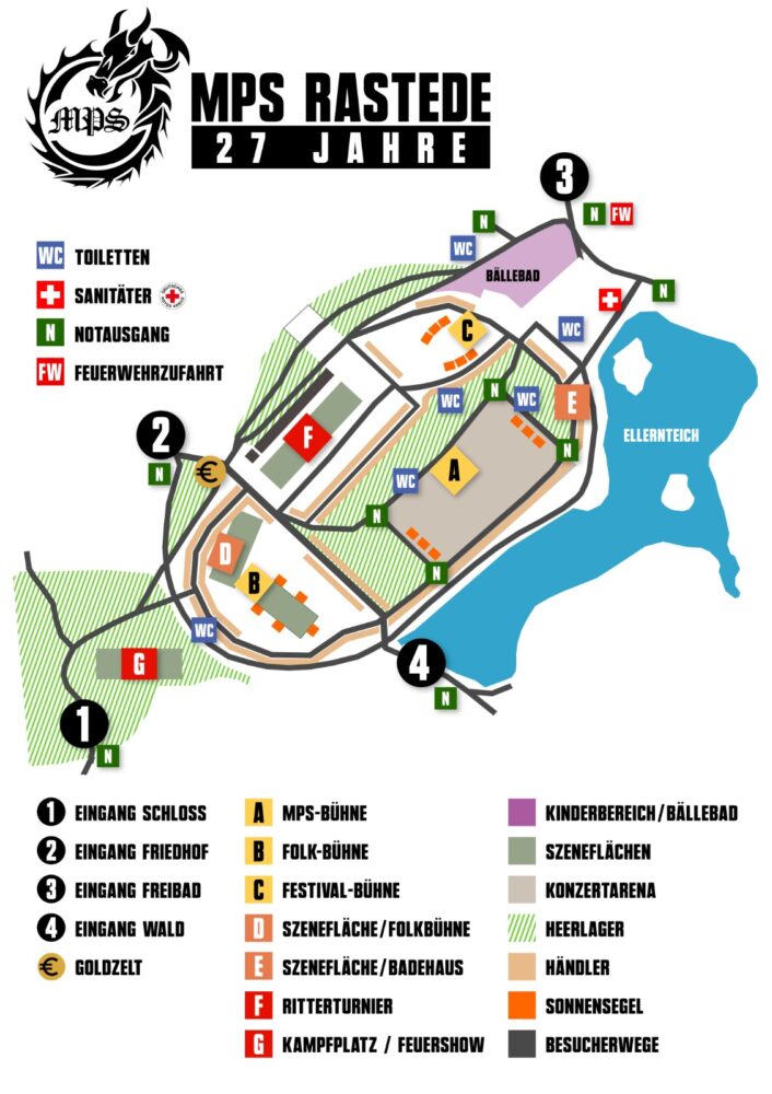 In diesem Jahr deutlich später als die letzten Jahre, öffnet das Mittelalterlich Phantasie Spectaculum (MPS) seine Tore im Schlosspark in Rastede. Traditionell findet das MPS im Nordwesten vier Tage statt und beginnt stets mit dem Christi-Himmelfahrt-Donnerstag. Da dieses Jahr der Vatertag spät ins Kalenderjahr fällt, müssen sich die Mittelalterfans aus Norddeutschland etwas länger gedulden. Das Programm ist wie gewohnt straff gestaffelt und beinhaltet viele individuelle Höhepunkte für Groß und Klein. Etabliert hat sich dabei, den Markt und die große Konzertbühne zu trennen. So können Tickets nur für den Markt, als auch ausschließlich für die Shows gebucht werden. Wer das volle Programm genießen möchte, kann Kombitickets erwerben.