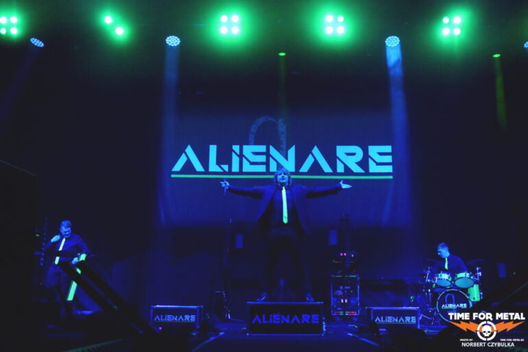 Man muss heute früh aufbrechen, denn es gibt wenige Parkplätze in Wilhelmsburg und Einlass ist schon um 17:30 Uhr. Es gibt mit Alienare und Soulbound gleich zwei Bands im Vorprogramm. Die Hamburg/Hannover Allianz von Alienare beginnt ihr Programm bereits um 18:45 Uhr. Darkwave-Synthpop in blau-gelbem Licht, der an die Elektro-Klänge der 80er und 90er erinnert. Viele Fans in der schon recht gut gefüllten Halle können mit dieser Art der Musik nichts anfangen. Hamburgerisch unterkühlt wird das Programm „ertragen“. Sänger Tim Schulschenk hat Mühe, Stimmung in die Menge zu bekommen. Sie versuchen ein wenig Aufmerksamkeit für ihre anstehenden Konzerte sowie die am 7. November erscheinende EP Mea Culpa zu machen.