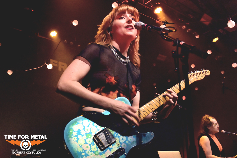 FrauPaul beginnen etwas verspätet, nutzen ihre Playtime leider nicht voll aus. Die Songs ihres Sets stehen im Fokus ihres Debütalbums, das vor vier Wochen das Licht der Welt erblickt hat. Hol Mir Die Sterne Zurück heißt es. Die Band ist sehr vielen hier im Saal gänzlich unbekannt. Sie erfahren aber viel Zuspruch und ihr Gig wird abgefeiert. Nach dem Gig gehen die Vinyls schnell weg. Die Bühne der Pumpe ist nicht sonderlich tief, dafür sehr breit. So stehen die Mädels sehr weit auseinander und können nicht wie gewohnt energiegeladen miteinander agieren. Zudem steht ja auch noch das Schlagzeug von Linda Sidaro den beiden Saitenartisten Lisa Paul (Gitarre) und Mary Vonk (Bass) im Weg. Drei der sieben Songs sind vom Album, das ich mir hier natürlich gleich mitgenommen habe. So bin ich besser vorbereitet, wenn ich sie in vier Wochen als Support von 24/7 Diva Heaven in Lübeck wiedersehe.