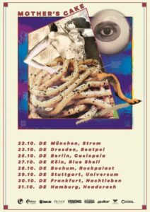 Mother’s Cake sind in folgenden Städten zu sehen: in München am 22. Oktober 2020 (Strom), in Dresden am 23. Oktober 2020 (Beatpol), in Berlin am 25. Oktober 2020 (cassiopeia), in Köln am 27. Oktober 2020 (Blue Shell), in Bochum am 28. Oktober 2020 (Rockpalast), in Stuttgart am 29. Oktober 2020 (Universum), in Frankfurt am 30. Oktober 2020 (Nachtleben) und in Hamburg am 31. Oktober 2020 (headCRASH). Tickets sind ab sofort erhältlich.