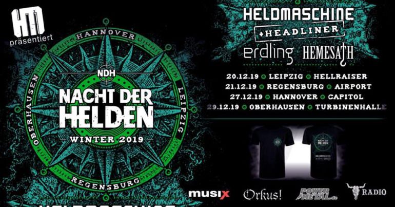 Der Winter wird hart. Auch diesen Dezember laden Heldmaschine, in Zusammenarbeit mit den Organisatoren der Fa. TMS-Event aus Koblenz, wieder zu den NDH-Winternächten und etablieren die beliebte Indoor-Festivalreihe Nacht Der Helden, die ganz im Zeichen der härteren deutschsprachigen Rockmusik steht, damit weiter.