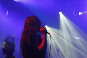 Der zweite Act, Oak, Ash & Thorn, stammt aus den USA und serviert dem Publikum ein ordentliches Extreme-Metal-Brett. Sänger Adam Armstrong überzeugt vor allem mit seinen kräftigen Growls, während die Clean-Vocals etwas Eingewöhnung verlangen. Musikalisch bewegt sich die Band im breiten Extreme-Metal-Sound, wobei der Gesamtsound eher in Richtung Black und Death Metal tendiert. Drummerin Cierra White treibt das Geschehen mit hohem Tempo konstant nach vorne. Auf der Setlist stehen Songs ihrer beiden Debütalben mit den Titeln Our Grief Is Thus und May Every Altar Linger. Oak, Ash & Thorn eröffnen ihr Set mit dem Rücken zum Publikum, in düsterer Atmosphäre aus Nebel und schwarzem sowie blau-gelbem Licht. Nach dem Intro servieren sie ihren Song Dying Culture. Die Stimmung ist gut, das Publikum begutachtet jedoch das Geschehen mit einem kleinen Sicherheitsabstand. Dunkle Vocals treffen auf kraftvolle Clean-Gesänge, unterstützt von zwei Backing-Vocals, was dem Sound viel Breite verleiht. Trotz Tourabschluss zeigt sich das Quintett agil und dynamisch. Sechs Songs, darunter Like The Sea I Raged und Headless, liefern ein wuchtiges Gesamtpaket, auch wenn der Clean-Gesang nicht immer ganz überzeugt. Nach rund 40 Minuten Spielzeit zündet Drink To Your Dead das Finale. Der Applaus fällt solide aus und schnell wird die Bühne für Yoth Iria vorbereitet.