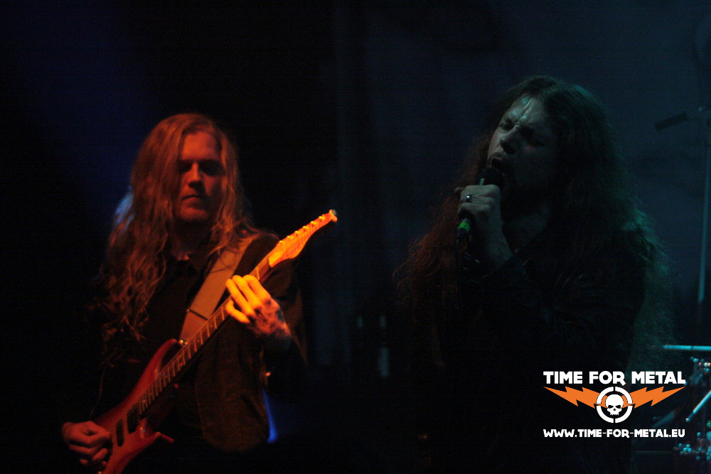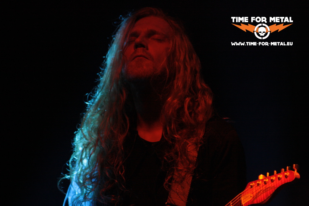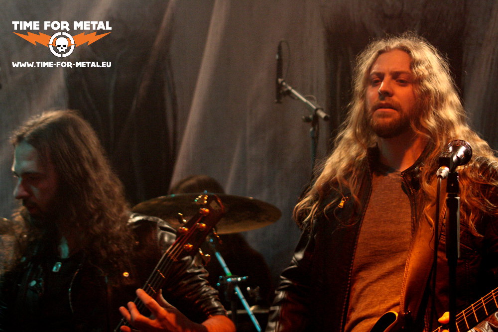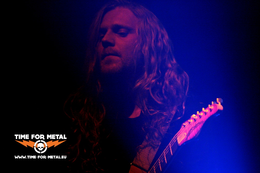 Alle warten auf Nailed To Obsurity, die ebenfalls sehr pünktlich um 20.15 Uhr beginnen und ein 75 Minuten starkes Set angekündigt haben. Als Release Party fungiert der Auftritt zudem als Generalprobe für die einen Tag später startende Tour, deshalb auch die frühe Stage Time. Der gleichnamige Song Black Frost, der als Albumtitel heute als Grundkorsett dient, macht den Anfang. Die Hände werden nach oben geworfen, als die Local Heros die düsteren Melodien zelebrieren. Eine ganze Region ist stolz auf ihre Doom Death Metal Kapelle, die liebend gern melodische Rinnsale zu tosenden Flüssen formt. Mittlerweile dürften alle wissen, dass sie bei Nuclear Blast unter Vertrag stehen und das Label ist heute ebenfalls zu Besuch, um die Premiere hautnah mitzuerleben. Protean von King Delusion setzt den nächsten Grundstein, danach folgt der nächste neue Song mit Feardom. Sänger Raimund geizt zu Beginn mit Ansagen und das ist auch gut so. Harmonisch gleiten die Werke ineinander und lassen enorm viel Platz zum Träumen. Wenn man Nailed To Obsurity, wie meine Person, seit den ersten Tagen verfolgt, könnte man vor Freude fast eine kleine Träne wegdrücken, während Road To Perdition und The Aberrant Host erklingen. Unglaublich gewachsen ist das Bühnenbild – absolut professionell. Der Sound ist für einen solchen Laden bärenstark und die Besucher fressen den Fünf wortwörtlich aus den Händen. Die neu integrierten Clean Vocals sorgen für eine weitere Nuance und machen die Ausrichtung der skandinavisch geprägten Formation noch breiter. Wer die Möglichkeit hat, in den nächsten Wochen Nailed To Obsurity im Vorprogramm von Amorphis und Soilwork zu erleben, sollte pünktlich anreisen, um diesem deutschen Senkrechtstarter zu huldigen! Was Altes wartet mit Abyss, der von Mythomania abgelöst wird und langsam das Ende einläutet. Intensiv geht es nicht nur auf der Stage zur Sache – auch davor machen die Besucher den Auftritt zu einem unvergesslichen Abend für alle Anwesenden. Memento spielt für Tears Of The Eyless vor, mein persönlicher Liebling von Black Frost. Als Schlusspunkt darf es Desolate Ruin richten – so schnell sind 75 Minuten verflogen. Damit lassen die Headbanger Nailed To Obsurity aber nicht nach Europa aufbrechen und fordern erfolgreich eine Zugabe. Vain, der Track vom zweiten Longplayer, wartet nach der kleinen Pause. Das schlussendliche Finale bildet der erste Song der Norddeutschen überhaupt: Neon God, der bei einem heimischen Konzert eine ganz besondere Bedeutung für alle hat, besonders für die beiden Gründer Volker und Ole, die an ihren Gitarren einen brillanten Job verrichten! Die Zeichen stehen weiter gut für Nailed To Obsurity, die mit ihrem Namen für einen düsteren melodischen Todesblei stehen, der mit den ganz Großen der Szene ohne Probleme in ein Gefecht ziehen kann.