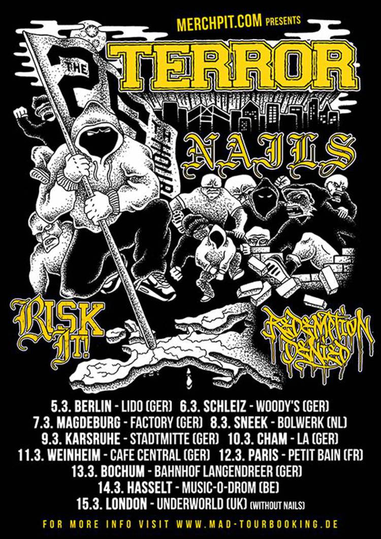 Die Band wird als Support der Los Angeles-Hardcore-Band TERROR unterwegs sein. Ebenfalls mit von der Partie sind die belgisch, niederländischen REDEMPTION DENIES sowie die deutsche Hardcore Truppe RISK IT.