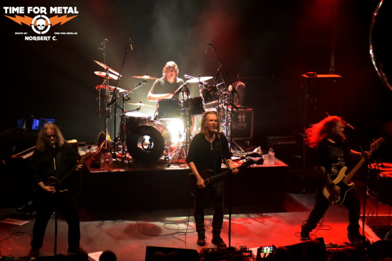 Das heutige Set ist eine Zeitreise aus dem Schaffen der Band. Allerdings, so viel sei vorweggenommen, fehlt der ganz große Protestsong 51st State, der den damaligen Durchbruch bedeutete. Mainstream ist nicht solch ein Ding von New Model Army, obwohl sie immer in den Albumcharts vertreten waren. Dafür ist mit Vagabonds ein weiterer Mega-Hit auf der Setliste gelandet. Vom letzten Album From Here geht der Bass-Song Never Arriving direkt ins Blut. Nach 90 Minuten endet die ausgelegte Setliste. Die Zugaben spielt die Band nach Zurufen aus dem Publikum oder nach spontanen Ideen. 105 Minuten dauert der Auftritt der Independent-Band insgesamt. Der Altersdurchschnitt ist dem Alter der Band entsprechend hoch. Jugendliche sehen wir kaum im Publikum. Mich wundert, dass das bisher fast überall gespielte Courage nicht auf dem Programm steht. Dieser Song richtet sich gegen den Krieg und ist den Ukrainern gewidmet. Bereits 15 Studioalben, die alle in den Charts landeten, bieten genug Stoff für einen unterhaltsamen Abend. Neben dem Übervater der Band wirken heute Dean White an Gitarre und Keyboard sowie Michael Dean am Schlagzeug mit. Besonders angetan hat mir das zweite kleine Drumset. Bassist Ceri Monger mit seinen feuerwehrroten Haaren liefert damit bei Born Feral solch einen Druck, dass es eine wahre Freude ist. Überhaupt empfinde ich die alten Songs frisch und modern interpretiert. Natürlich werden die „Antihelden“ dafür vom Publikum gefeiert. Es ist ein Abend, den das Publikum genießt und sich auf die nächste Show freut.