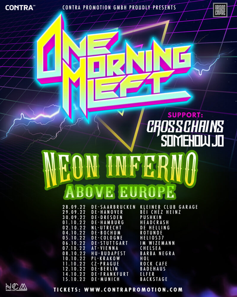 Verpasst One Morning Left nicht auf ihrer Neon Inferno Above Europe 2022 Tour zusammen mit Special Guests Crosschains und Somehow Jo.