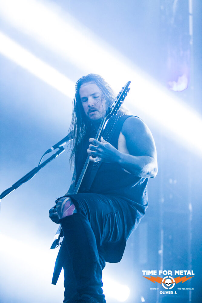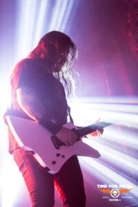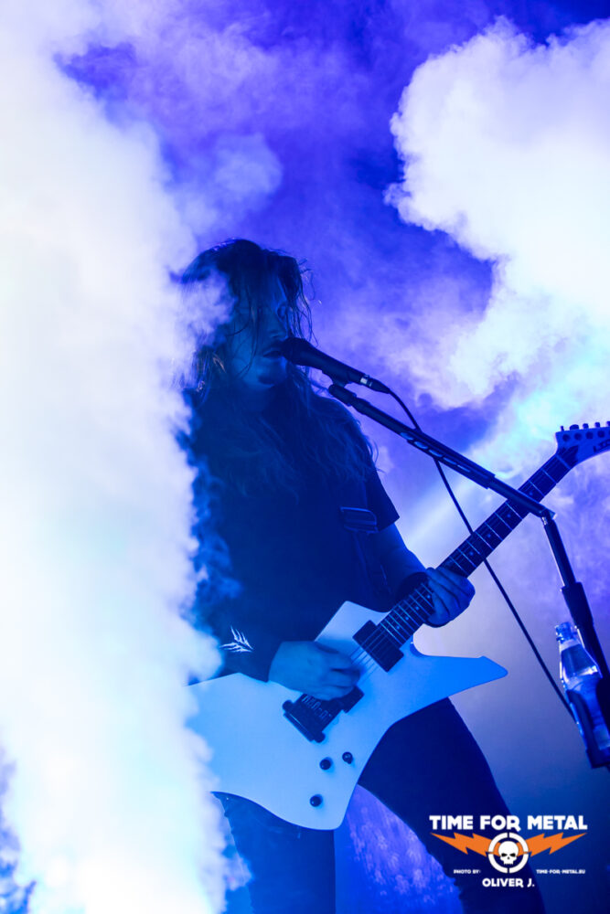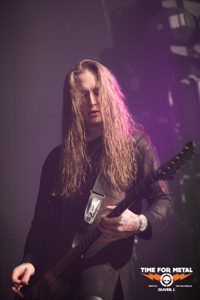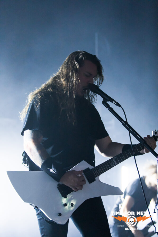 Orbit Culture starten dann auch direkt mit dem Kracher Death Above Life in den Abend. Und tatsächlich schafft es Sänger Niklas Karlsson sogar noch, die Begrüßung ins Intro des ersten Songs zu packen. Was mich total umhaut, ist der Sound – ein unfassbares Brett fegt einem von der ersten Sekunde an entgegen! Das Licht hingegen ist – zumindest mal aus Fotografensicht – wieder alles andere als optimal. Es kommt fast ausschließlich von hinten und wird mit jeder Menge Nebel kombiniert. Und so versuche ich während The Storm und The Tales Of War alles rauszuholen, was die Kamera nur so hergibt. Die Jungs aus Schweden haben auf jeden Fall richtig Bock und Sänger Niklas hat auch definitiv Humor. Denn bei North Star Of Nija fordert er die Fans auf: „Scream as loud as you can – cause I don’t know the lyrics!“ Bei Bloodhound ist es dann so weit – in der Batschkapp entfesselt sich ein Circlepit, den sich Atlas sicherlich auch gewünscht hätten. Gefühlt steht niemand im ersten Drittel still und das Publikum eskaliert vollkommen. Aber es gibt auch traurige Momente. Denn Niklas ist enttäuscht, dass das Publikum sich beim Crowdsurfen so zurückhält. Daher fordert er die Frankfurter Fans noch einmal explizit auf, bei While We Serve nach vorne zu surfen, und in der Tat kommen auch etliche diesem Wunsch nach. Mit Hydra und Vultures Of North kloppen die Schweden zum Abschluss des Abends noch mal zwei richtig dicke Songs raus und bringen das Publikum nun endgültig zum Kochen. Abschließend bedankt sich Niklas noch mal bei den Fans für den Abend und dass so viele ein Ticket erworben haben, und weist beim Verabschieden noch mal darauf hin, dass sie heute die größte Headliner-Show in ihrer Karriere gespielt haben – „The biggest show – until tomorrow“. Zusammenfassend kann ich sagen, dass ich schon lange keinen derartigen Abriss mehr erlebt habe und dass Orbit Culture sicherlich nicht umsonst gerade so durch die Decke gehen!