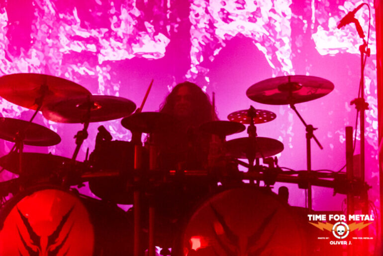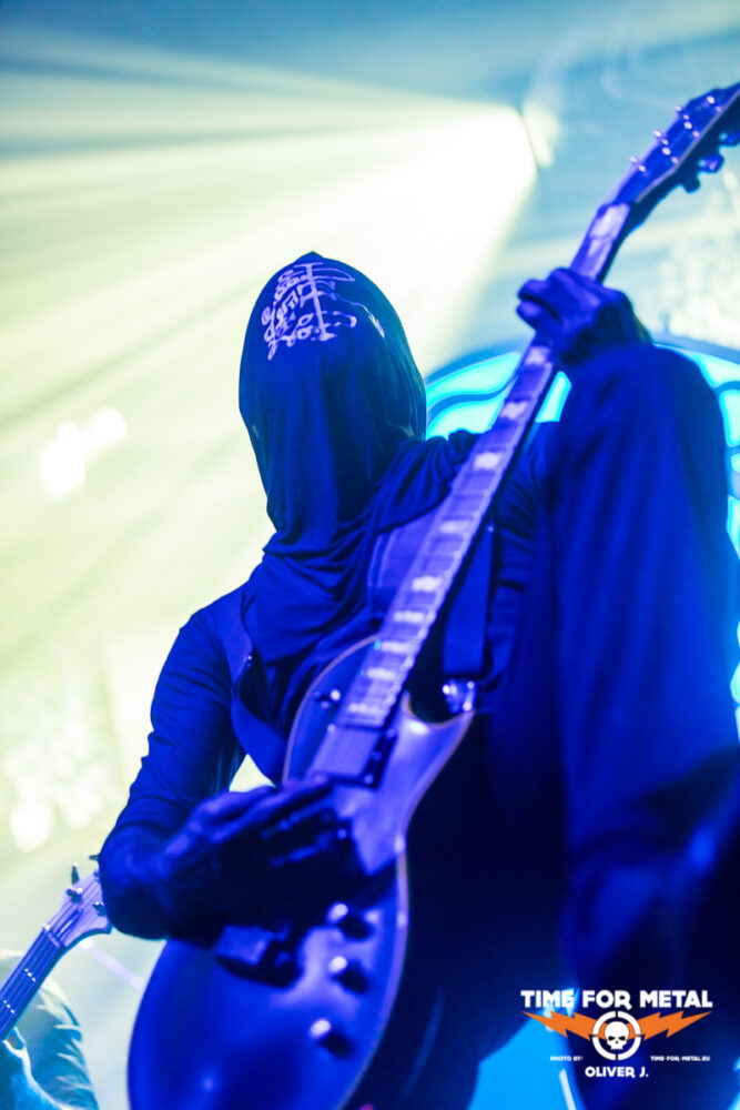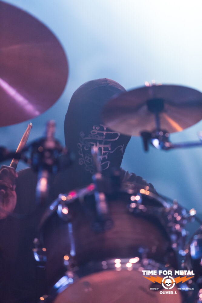 Weiter geht es mit Gaerea aus Portugal. Musikalisch geht es nun in die Post-Black-Metal-Richtung. Mit Hellbound gibt es direkt einen Knaller auf die Ohren, den das Publikum auch entsprechend abfeiert. Auch wenn das Licht hier deutlich besser ist, wird es mit wirklich viel „sehen“ aber auch hier nichts, denn Gaerea verbergen sich hinter Masken. Spannend finde ich die Bewegungen von Sänger Guilherme Henriques, die fast eine Art Ausdruckstanz darstellen. Aber immerhin wird es definitiv nicht langweilig auf der Bühne! Und auch musikalisch gehen Songs wie World Ablaze oder Laude richtig gut voran! Mittlerweile ist die Batschkapp auch sehr gut gefüllt, sodass es definitiv kuschelig wird – ausgiebiges Moshen wird zum echten Problem. Zum Ende der Show gibt es dann noch einen „Taylor-Swift-Moment“, denn die Band bittet alle, die Handys zu zücken und im Takt zu schwenken. Nicht unbedingt das, was ich bei Gaerea erwartet hätte, aber es schaut definitiv gut aus! Nach gut 45 Minuten ist dann aber auch Schluss und die Bühne wird für den Headliner des Abends umgebaut