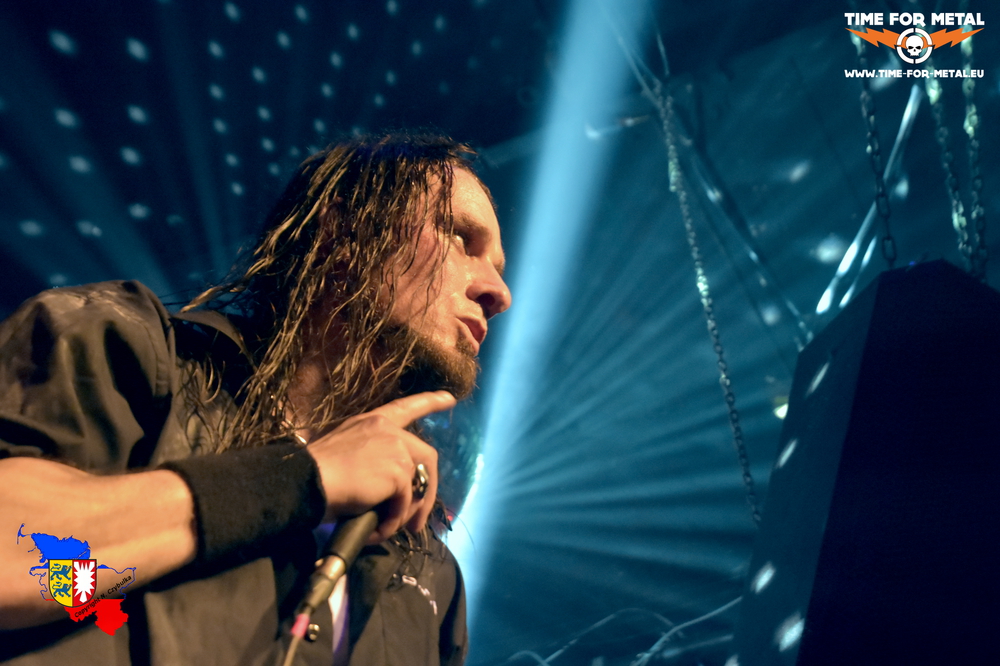 b.o.s.c.h. aus Wilhelmshaven beginnen den Abend. Wir durften die Jungs vor ein paar Wochen auch hier in Lübeck kennenlernen und freuen uns auf den Auftritt. Nach drei Alben wachsen die vier mit ihrem eigenen Stil langsam aus der Supportrolle heraus. Frontmann Max Klee polarisiert vom ersten Ton an. Natürlich stehen die Songs der letzten CD Fleischwolf im Vordergrund. Es beginnt mit Schock, Fleischwolf, Das Spiel sowie Evolution. Dadurch, dass das Material beider Bands auf der Bühne steht, haben sie nicht viel Platz. Schlagzeuger und Programmer Lutz Möller leidet am meisten unter dem Platzmangel. Gitarrist Christian Heil und Bassist Axel Mintken stehen einfach recht starr auf den Außenseiten. Eine kleine Zeitreise durch die Geschichte der Band beginnt. Mehr von dem ersten Longplayer erklingt vor dem Joachim Witt Cover der Goldene Reiter. Die bisher Anwesenden sind auf Drehzahl. Der Auftritt ist auf 60 Minuten ausgelegt. So folgen noch Folgemann, wieder vom „neuen“ Album sowie Spiegel und Kälte vom ersten Album Einsam und Engel sowie Der Apparat von zweiten, gleichnamigen Album Apparat.