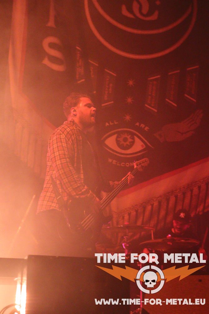 Würdige Einheizer findet man in den Amerikanern von Lorna Shore, die erst mal testen, wie kraftvoll die Boxen sind und nach ihrem fulminanten Auftritt beim Summer Breeze jetzt mit Parkway Drive und While She Sleeps die Tour bestreiten. Eine gute halbe Stunde kann die Deathcoreband dem Publikum einheizen, das sie begeistert feiert.