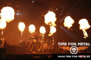 Immer wieder unterrahmen Feuerfunken, Knalleffekte und Lichtprojektionen die Songs, darunter natürlich der gleichnamige Song des neuen Albums Darker Still sowie Ground Zero und Bottom Feeder. Bei The Void wird der erste Teil in Englisch, der zweite Teil in Deutsch – Die Leere präsentiert und zu dem Song Schattenboxen ist kein Geringerer als Casper selbst mit auf der Bühne und performt mit Winston, der zwischenzeitlich zu schwarzem T–Shirt mit passendem Jackett gewechselt ist. Auch vier Violinenspielerinnen umrahmen das Set und sorgen für noch mehr Stimmung bei einzelnen Liederparts. Parkway Drive wissen einfach, wie man perfekt inszeniert und eine Show richtig in Szene setzt. Die letzten beiden Nummern nach zwei schweißtreibenden Stunden sind die Klassiker Crushed und Wide Eyes, inklusive Feuerregen – erst dann lässt die tobende Menge die Band von der Bühne!